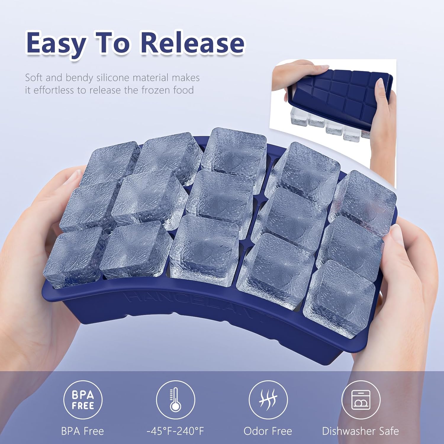 - EASY RELEASE ICE CUBE TRAY: Square ice cube trays has a non-sticky flexible surface and make it easier to release ice, these flexible ice cube trays for cocktails can be easily pushed from the bottom to remove ice cubes and enjoy your drink