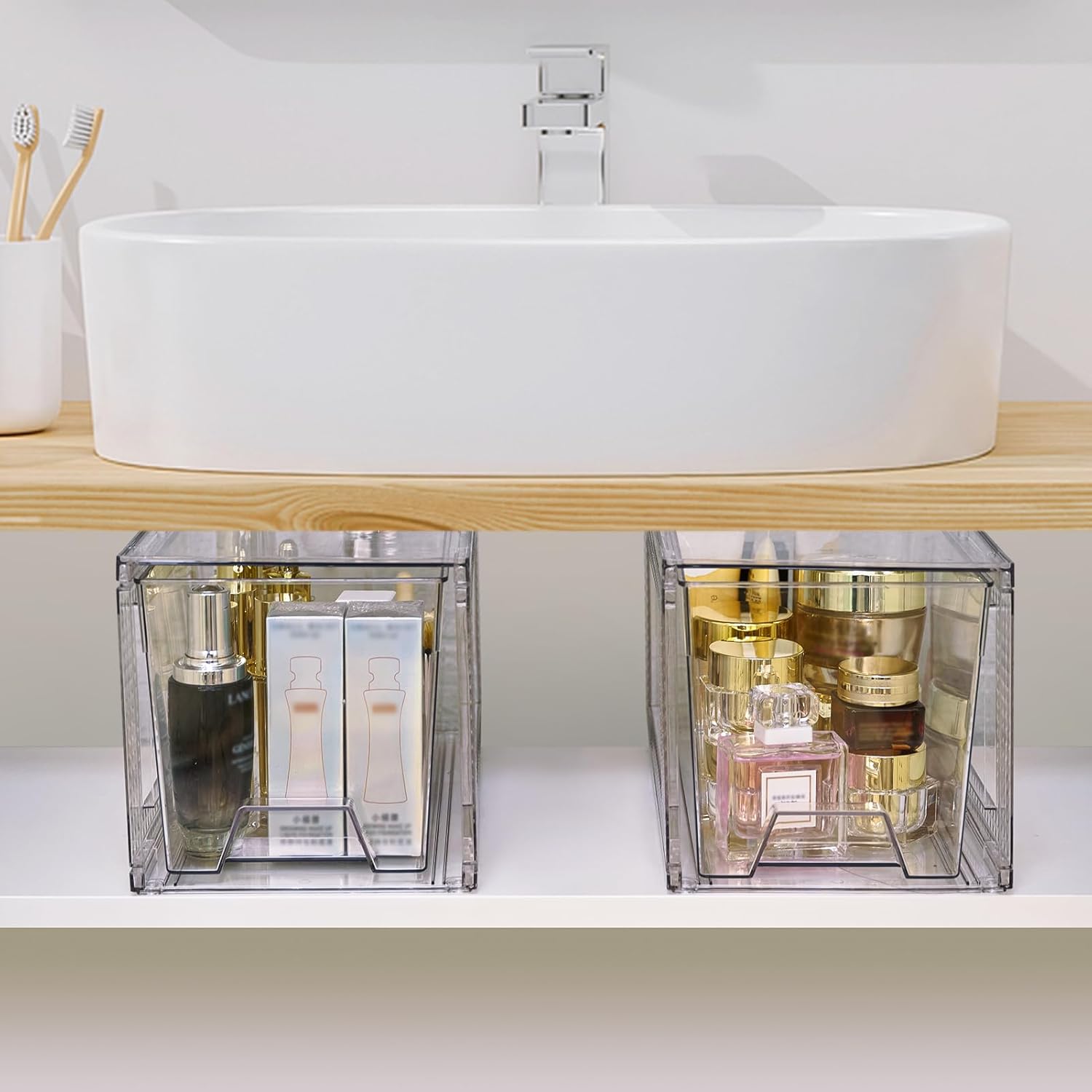 - Easy to Slide and Access: These makeup organizers are designed with built-in handles and smooth sliding rails for easy opening and closing. Add silicone pads underneath for extra stability on smooth surfaces