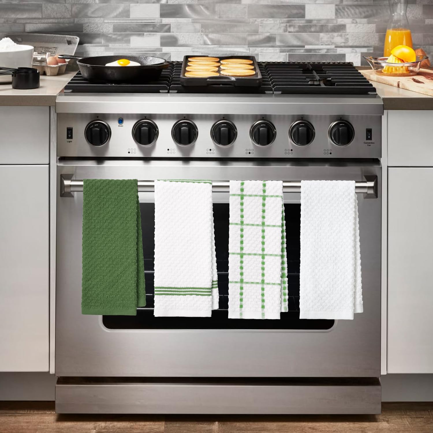 - VALUE PACK: Collection includes 4 cotton kitchen towels available in a variety of colors to coordinate with any kitchen décor. Measures 15 in x 25 in.