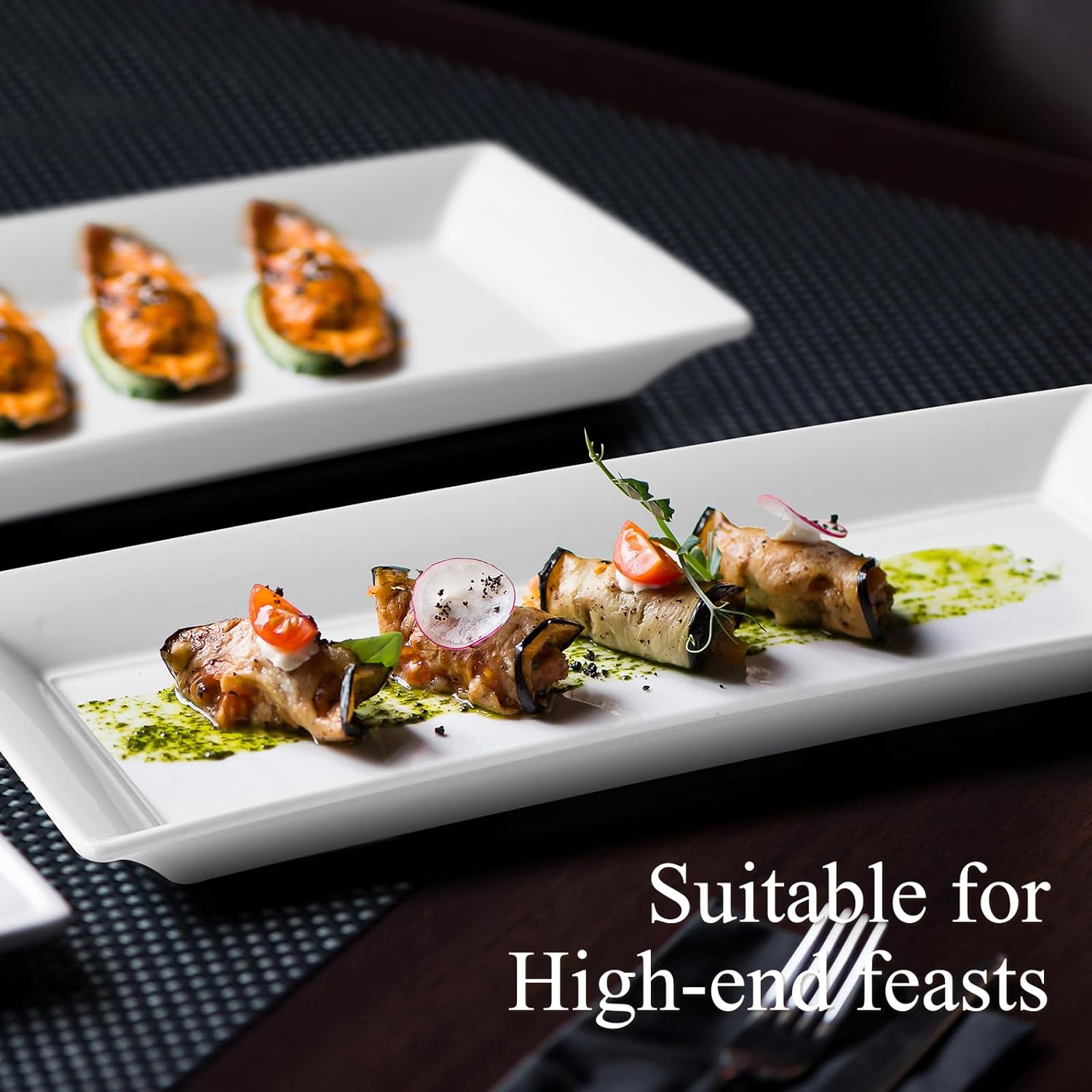 - Rectangular Serving Plates: White serving trays with advanced glazing technology, the surface is neat and smooth, white ceramic serving tray are simple and elegant, not easy to leave scratches, whether it's sticky dips or grease, the white dinner plates clean easily by hand or in the dishwasher