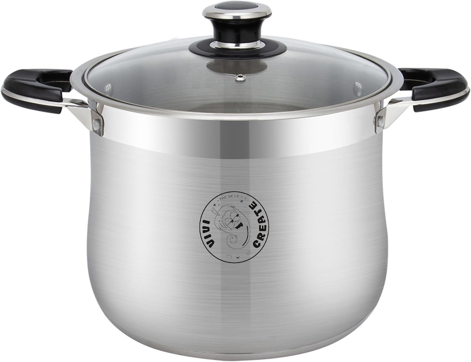 Vivicreate Stainless Steel Stock Pot with Lid Induction Compatible Soup Pot Heavy Bottom Cooking Pot with Built in Scale Olla de acero inoxidable para inducción