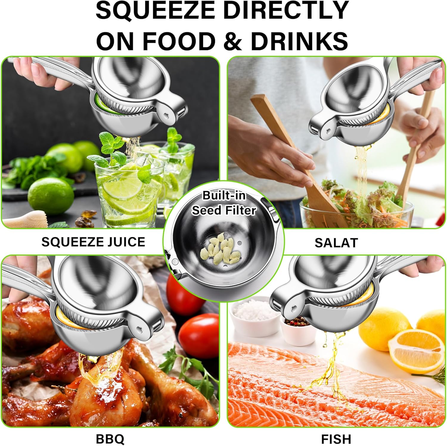 - Quality Materials: Made from food-grade zinc alloy, this lemon juicer squeezer is safe, rust-resistant, and built to last; Its sturdy, corrosion-proof design ensures long-term durability, making it a reliable and essential tool for every kitchen