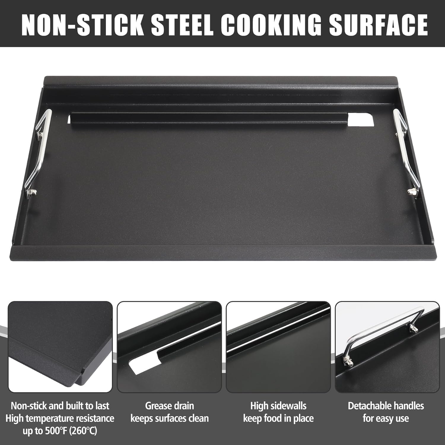 Full Size Griddle with Handles for Kitchen Aid 720-0709C 720-0826 860-0003C, Flat Top Grill Insert Replacement for KitchenAid 750-0780 870-0003 Nexgrill 720-0709B, Carbon Steel, Non-stick