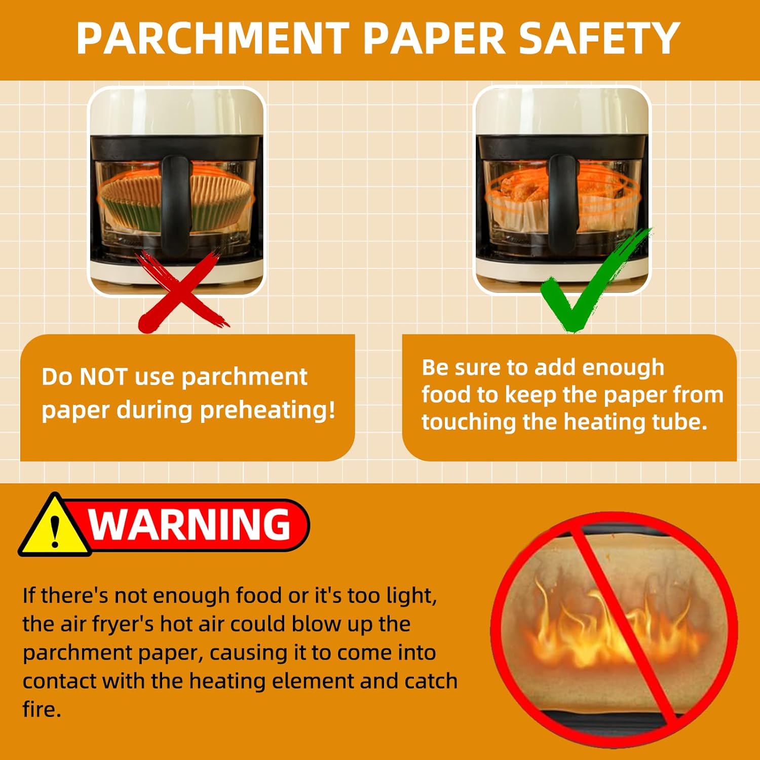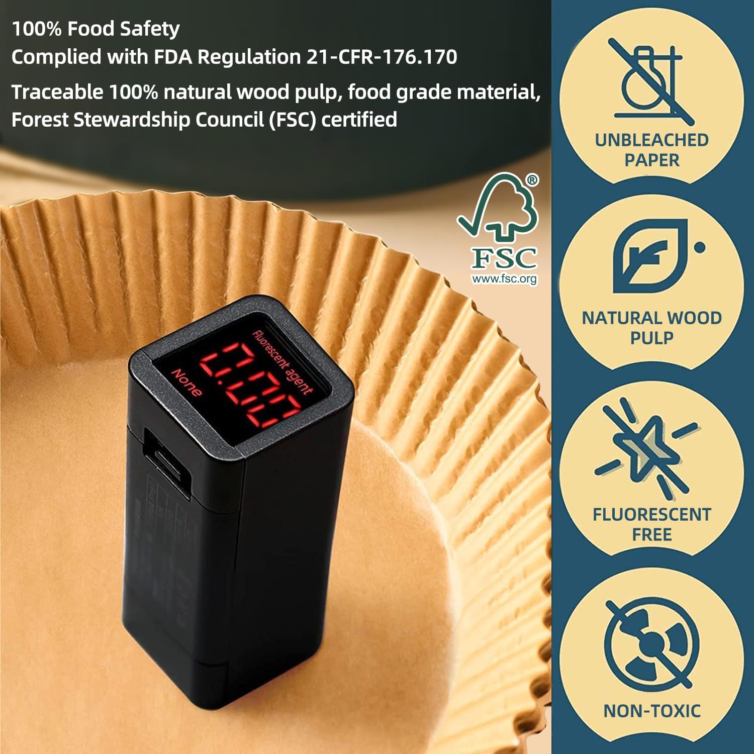 - Food Grade Airfryer Accessories - HONYAO air fryer paper liners are made of food grade parchment paper and silicone oil 100% healthy and heat-resistant, BPA free, waterproof, oil-proof, and non-stick. Our Air fryer paper liners can withstand temperatures up to 446 °F (230 °C) while retaining the flavor of the food.