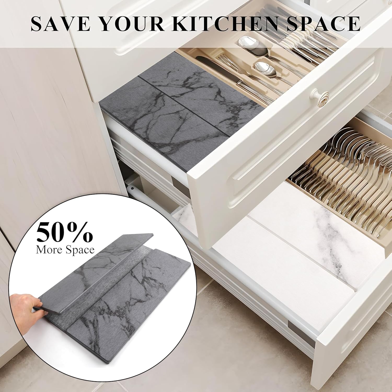 Quick Dry Collapsible Dish Drying Mat, Eco-Friendly Absorbent Diatomaceous Earth Mats for Dishes Bottles Cups 20"×16"Large Stone Dish Drying Mats for Kitchen Counter (Gray, 20"(L)×16"(W))