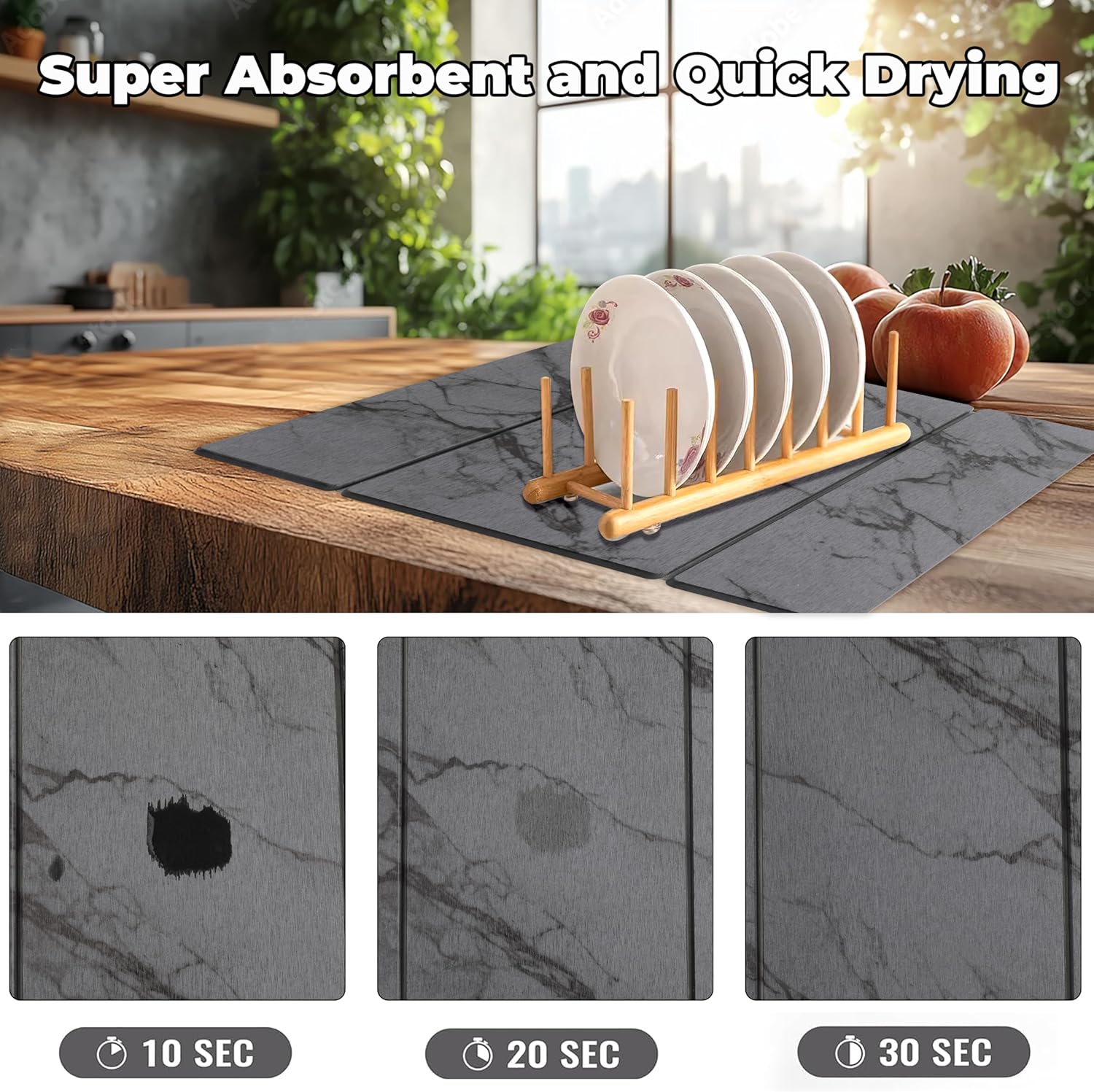 - 【Super Absorbent & Quick Dry】GMMA dish drying pad is highly absorbent and can absorb water quickly within minutes to keep the countertop consistently dry and pristine, bidding farewell to issues of dampness.The stone mat will automatically absorb water and dry naturally.Please don't spill dark drinks such as coffee, red wine on the Stone dish drying mat. It may leave marks on it.