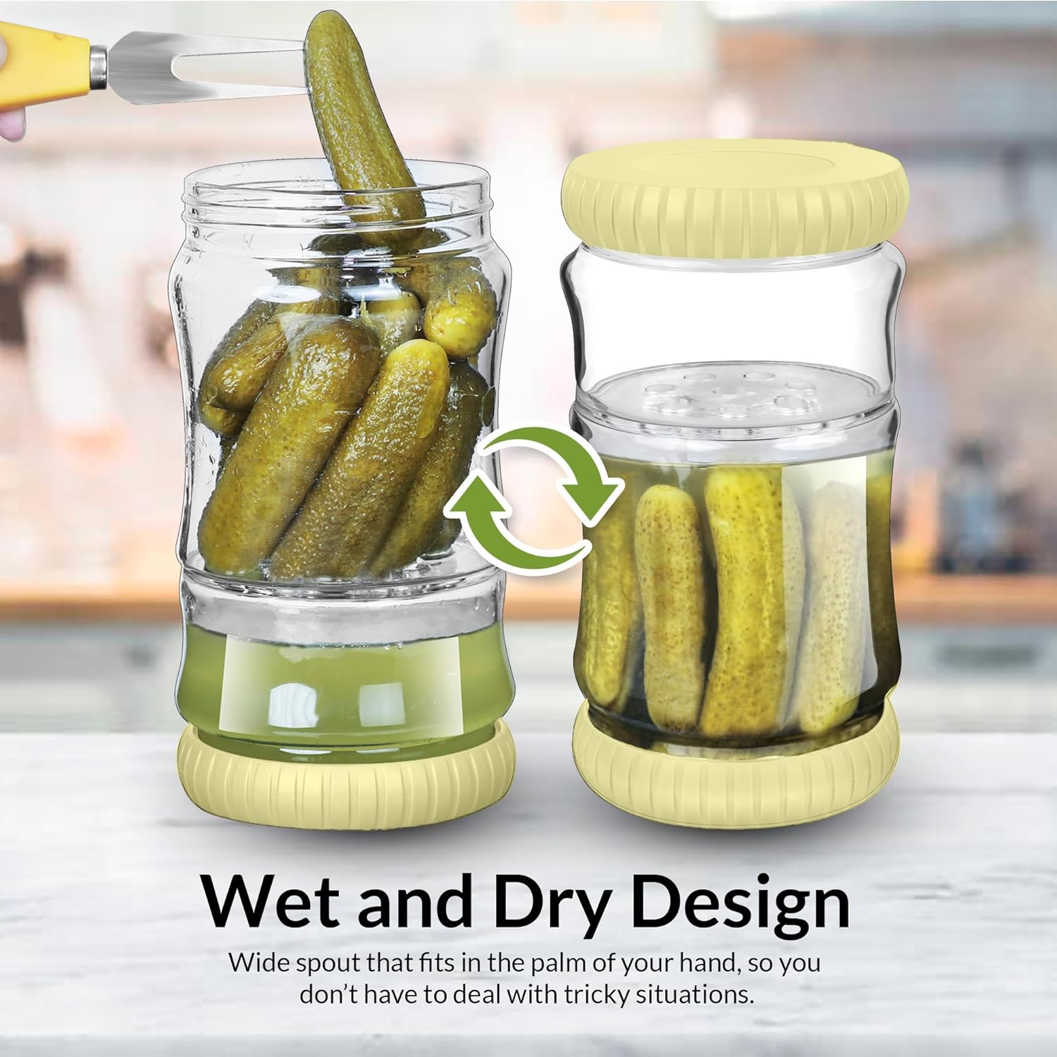 40oz Glass Pickle Jar with Strainer Flip - Pickle Storage Container with Airtight Lid, BPA-Free, Dishwasher Safe, Fermentation Hourglass Jar for Kimchi, Olives, Jalapeno, Gherkins (Yellow)