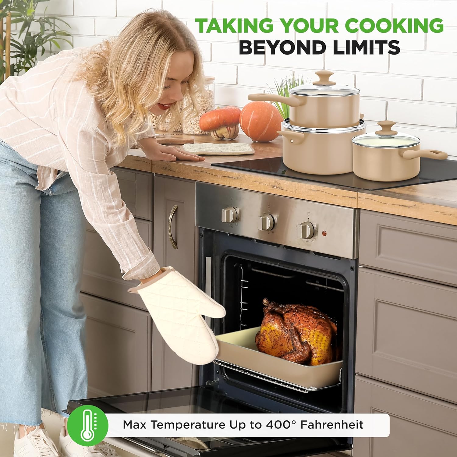 - EFFORTLESS COOKING AND CLEANING - The ceramic non-stick coating ensures food releases easily, reducing cleanup time. This non stick pots and pan set also features even heat retention for consistent, high-quality cooking results.