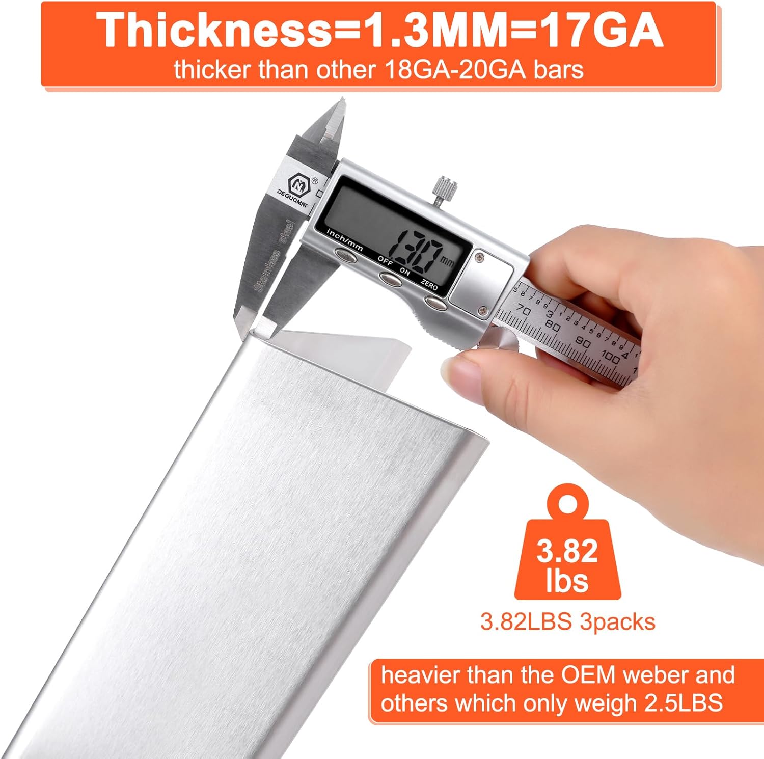 - đ„ă16GA THICKNESS- FOR QUICKER TIME TO TEMPăMade from 16GA heavy-duty porcelain steel,these 15.3" flavorizer bars are thicker than other 18GA-20GA Flavour Bars, with upgraded thermodynamic properties. This extra heft means they can take the heat, use after use, without warping or losing their shape, and at the same time better protects the burner.
