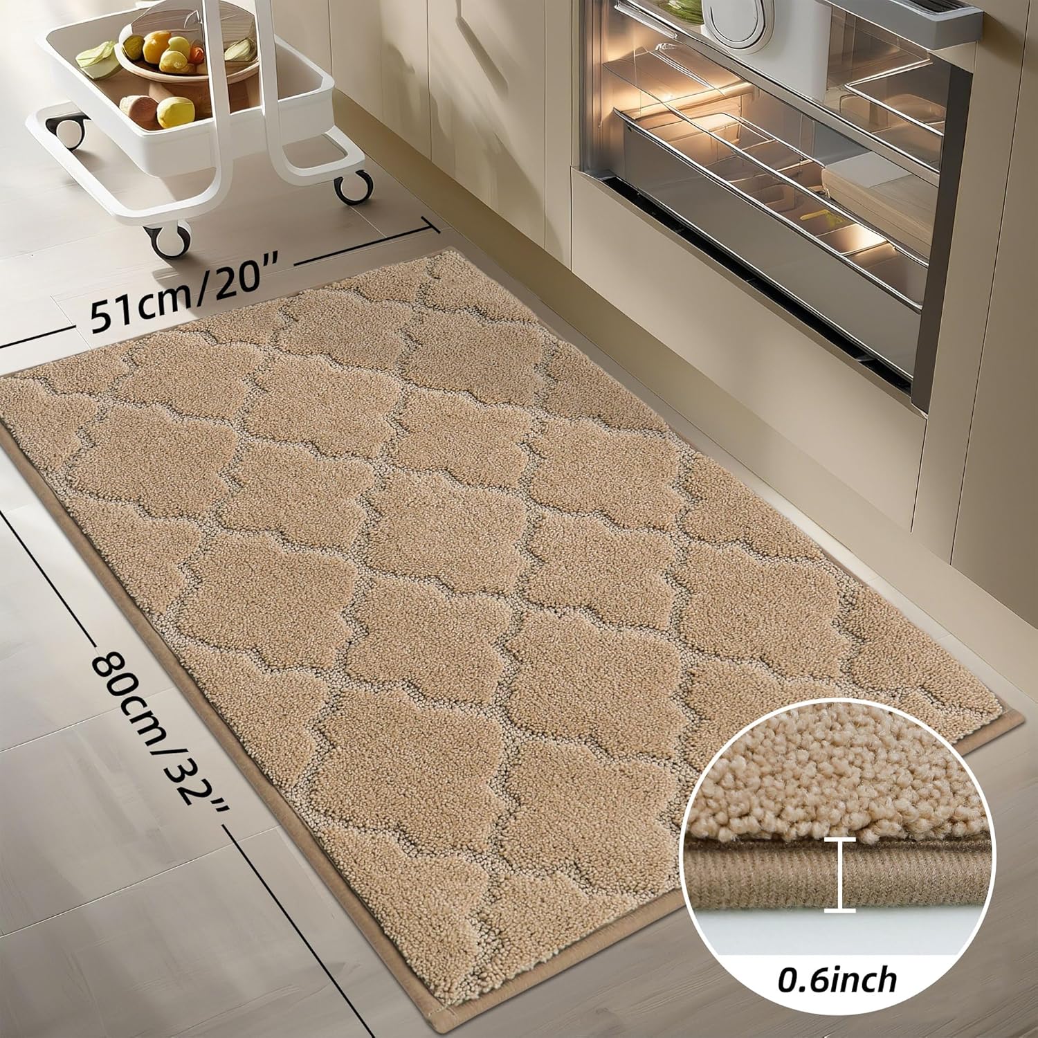 - DURABLE AND STAIN-RESISTANT: Designed for longevity, our kitchen runner rugs with the tight sewing and dense yarns provide exceptional durability,superb absorbency,stain resistance, and colorfastness.These features protect your floor from oil, moisture, sauces, or food particles, ensuring long-lasting performance even in high-traffic areas