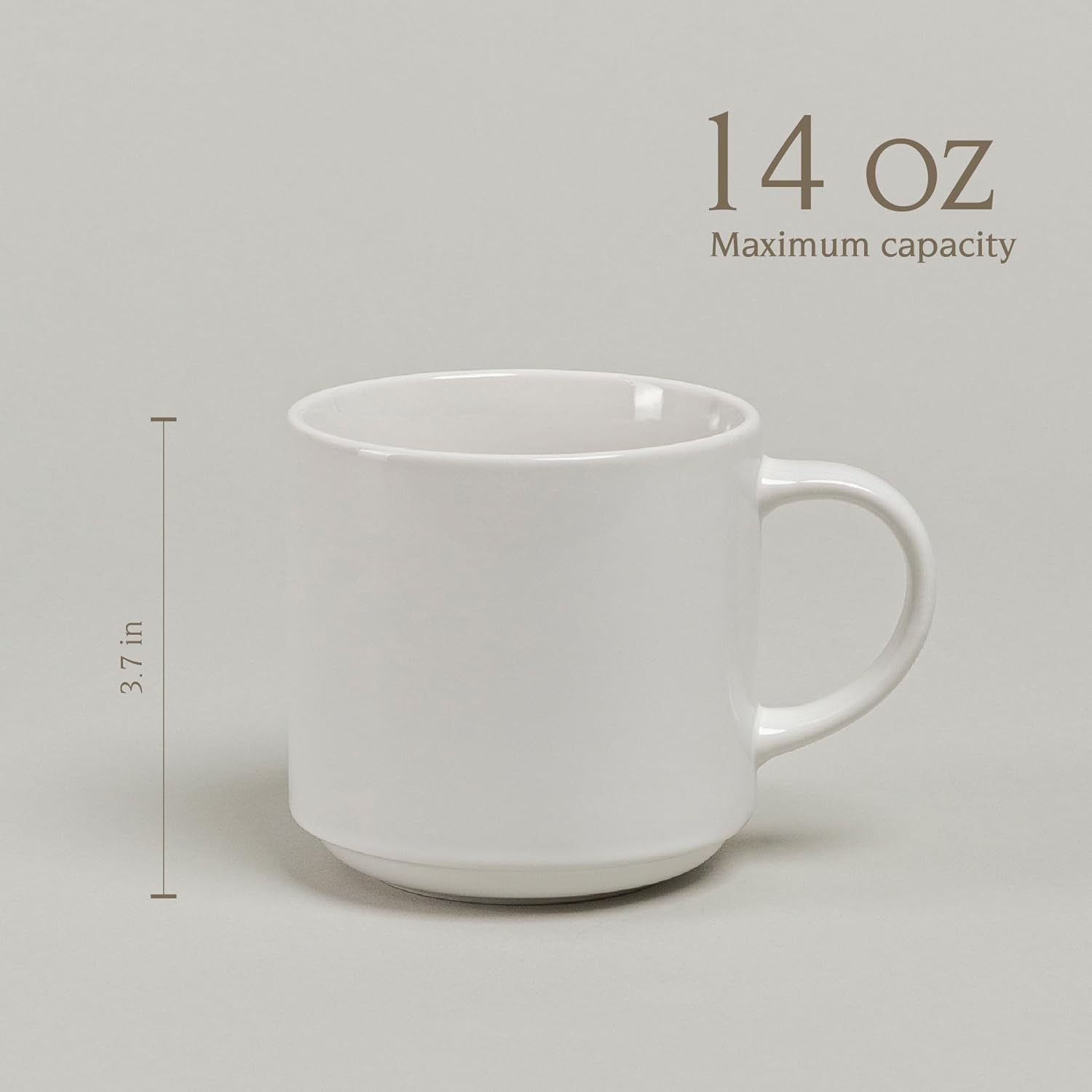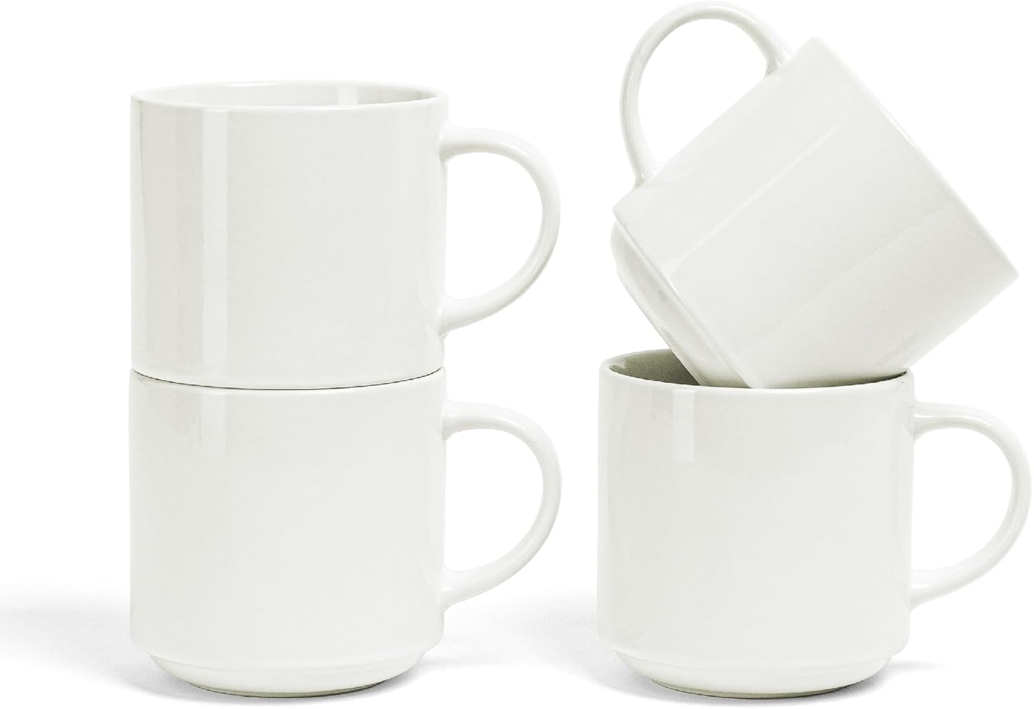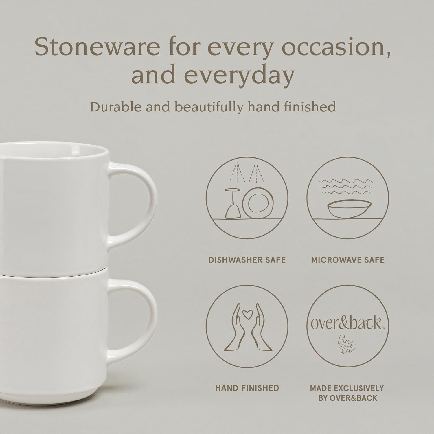 over&back Stackable Stoneware Coffee Mugs - 4-Piece Mug Set - Enjoy the Perfect Cup of Coffee, Tea, Latte, and More - Glossy White - 14oz