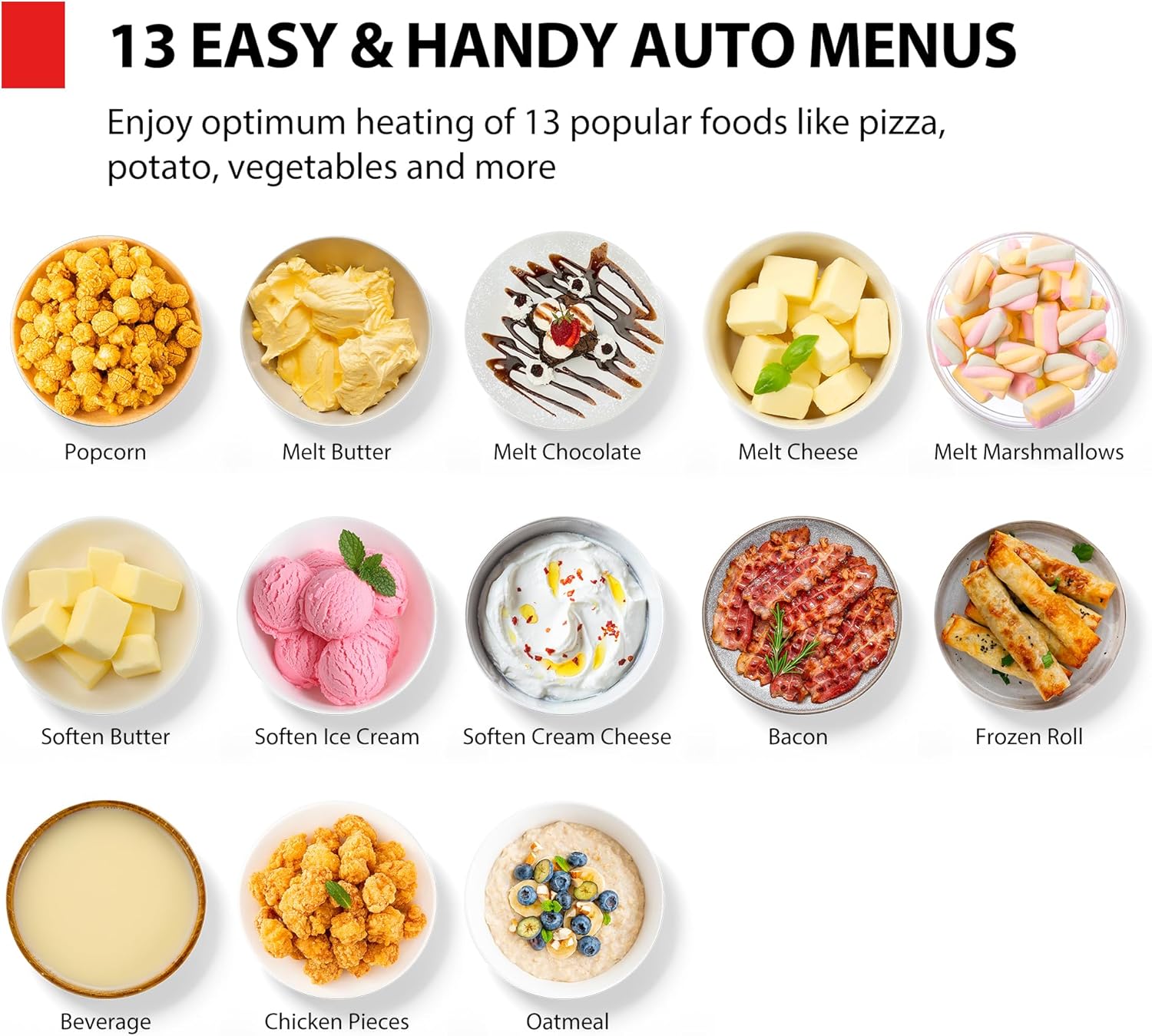 - Versatile Cooking: Featuring 10 unique power levels and 13 preset menus for effortless sensor cook of various dishes, snacks, and beverages, this microwave offers culinary flexibility with a 1000W output power and 1600W input power.