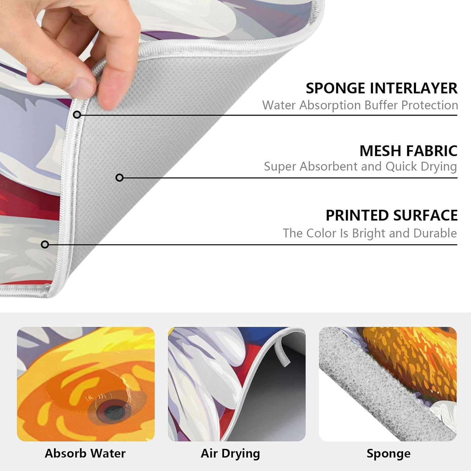 Daisy Flowers and American Flag Dish Drying Mat for Kitchen Counter Absorbent Microfiber Large Drying Pad Dish mats for Kitchen Countertops 18 x 24 Inch