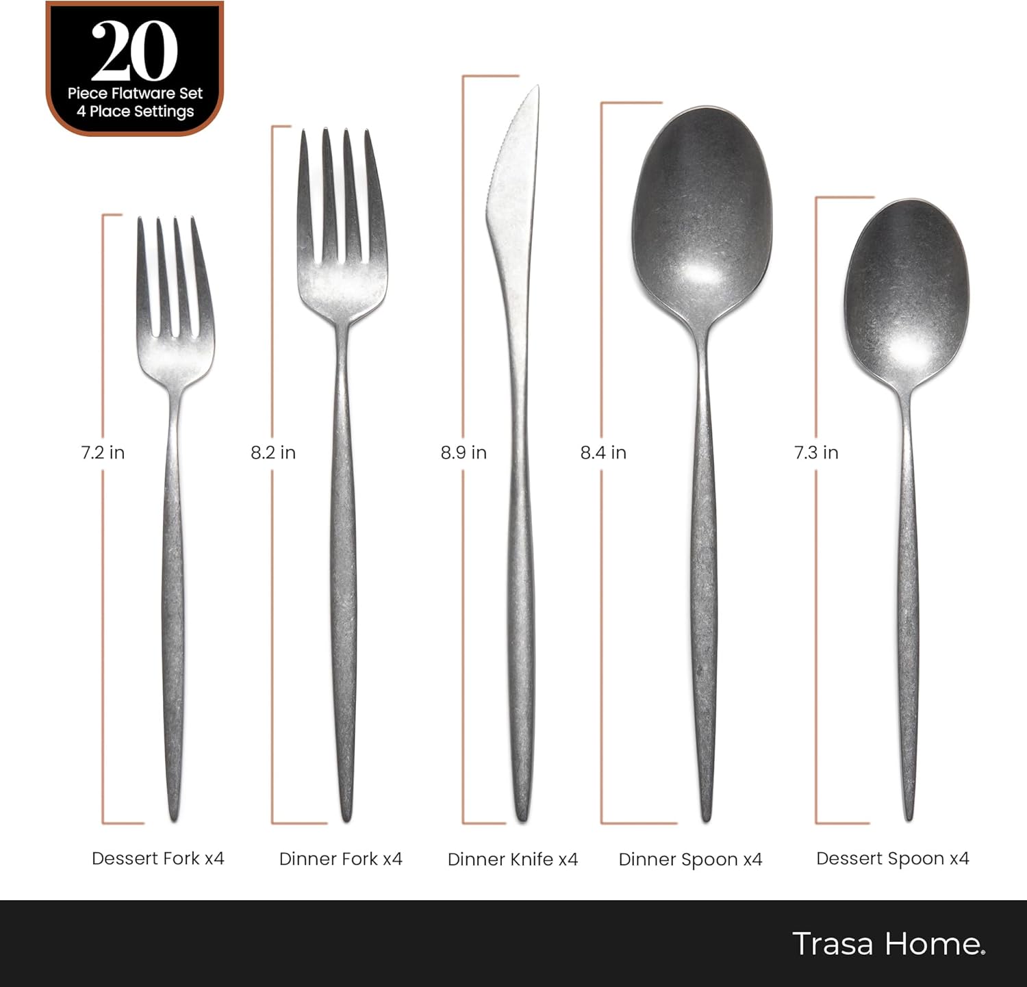- Durable & High-Performing Materials: Crafted from premium 18/10 stainless steel, Trasa Home flatware uses a special technique that enhances durability, resists corrosion, and maintains a spotless finish, ensuring long-lasting beauty and reliability for everyday use.