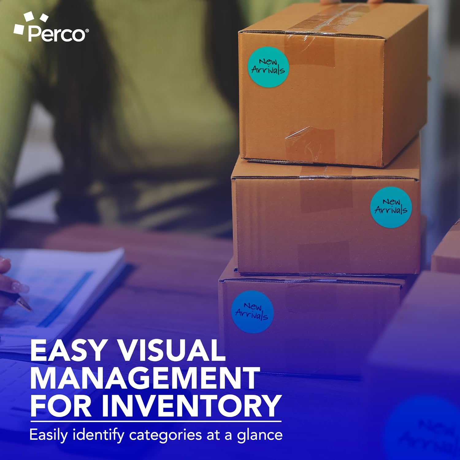 Perco Teal 3-Inch Round Circle Dot Sticker Labels - Multi-Roll Pack (3 Rolls, 500 Labels Each) - Permanent Adhesive, Vibrant Colors, Strong Hold - Perforated for Easy Use - Made in USA