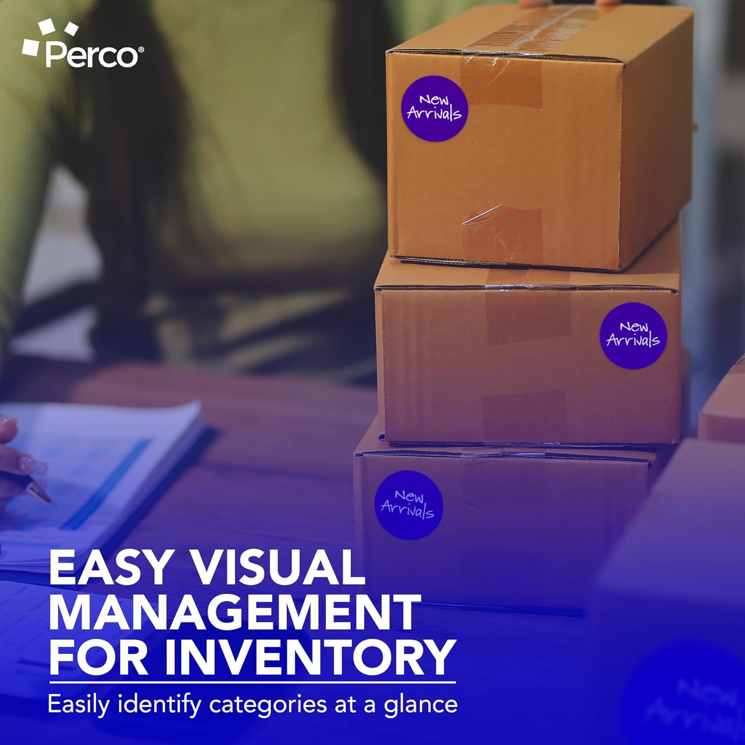 Perco Purple 3-Inch Round Circle Dot Sticker Labels - Multi-Roll Pack (3 Rolls, 500 Labels Each) - Permanent Adhesive, Vibrant Colors, Strong Hold - Perforated for Easy Use - Made in USA