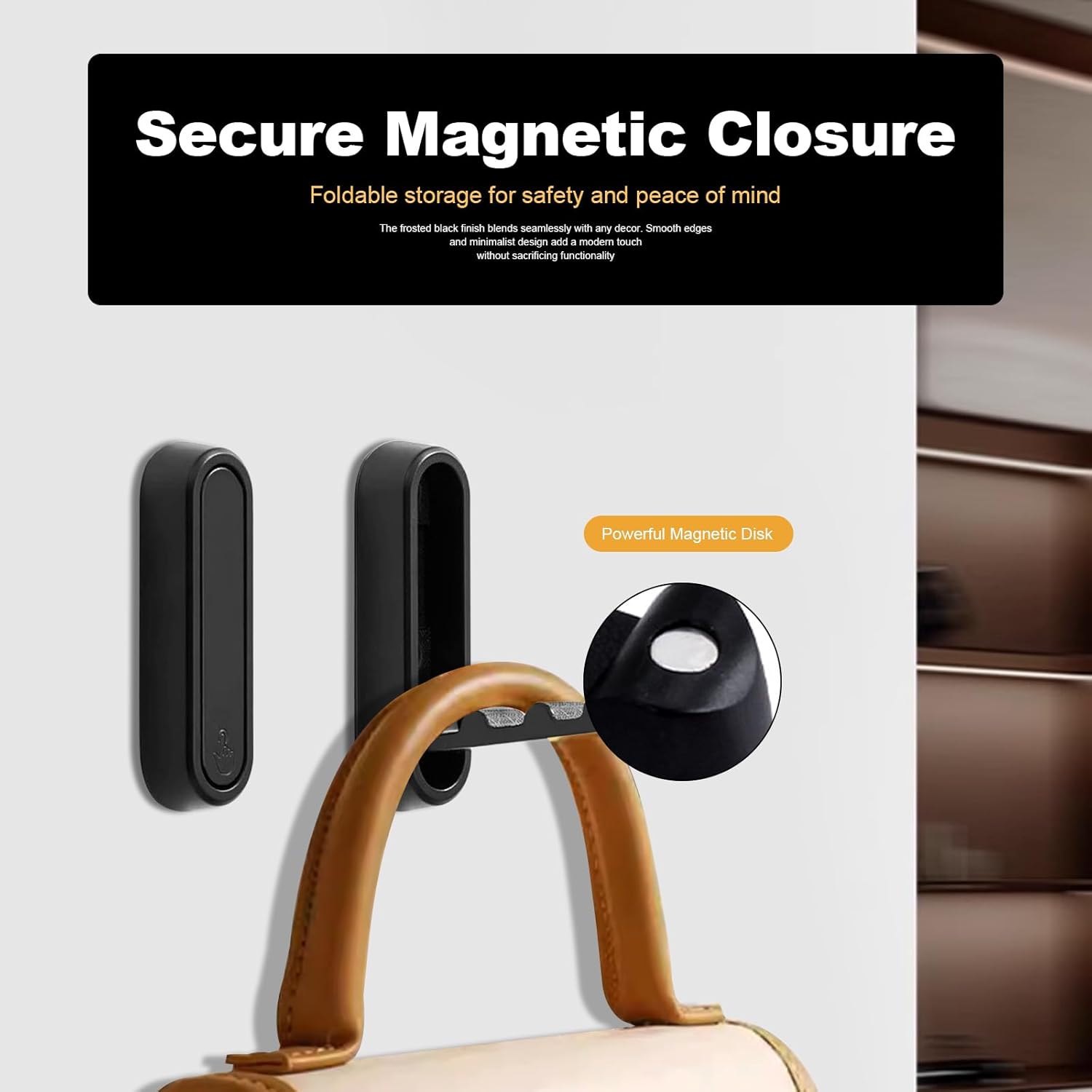 Heavy Duty Black Folding Wall Hooks 2 Pack, Space Saving Foldable Coat Hooks for Bathroom, Closet, Entryway, Kitchen, Towel, Robe, Bag, Hat Hanging, Easy Mount, Zinc Alloy, Corrosion - Resistant