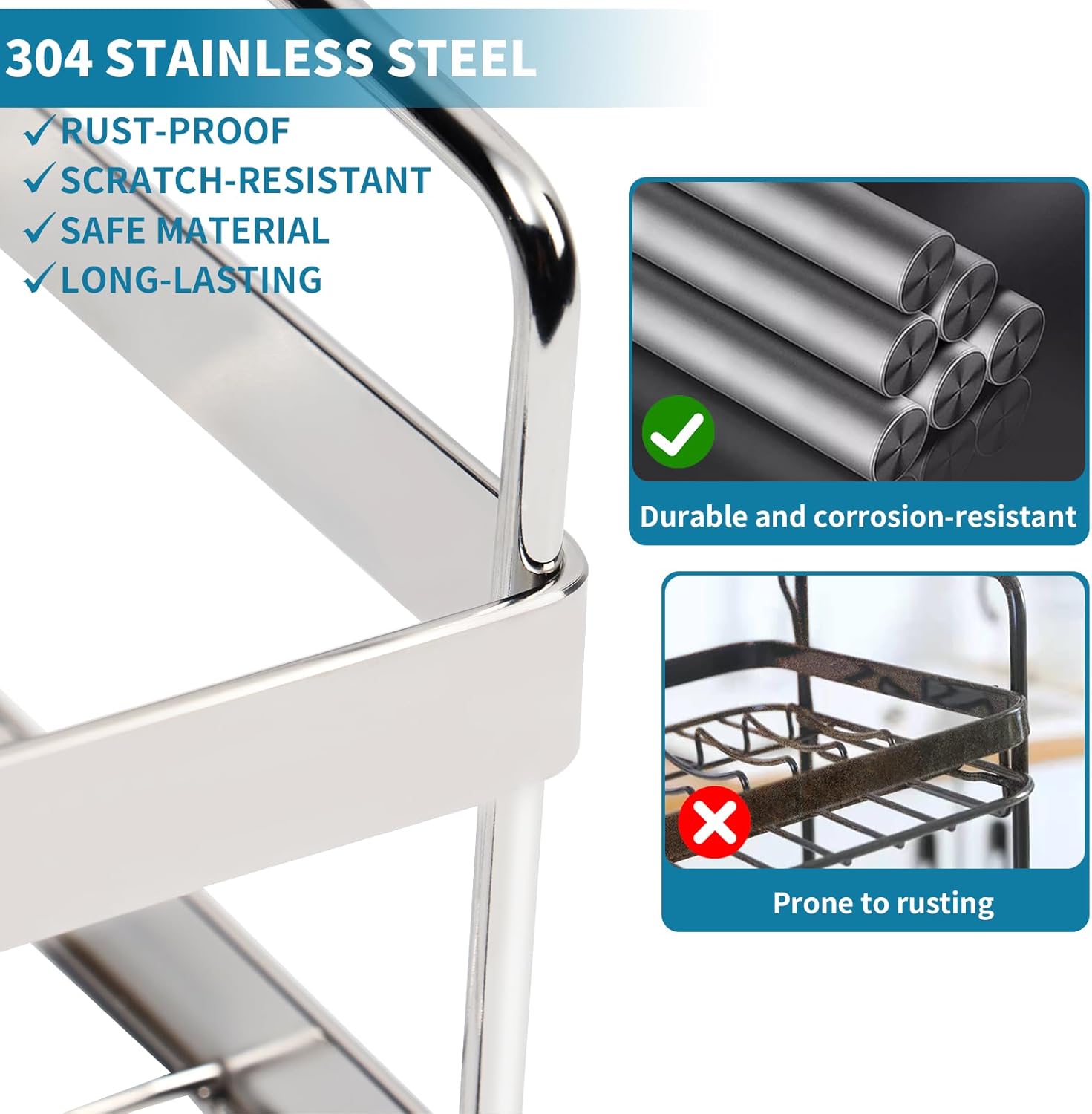 - STAINLESS STEEL MATERIALS : This kitchen counter dish rack, made from premium stainless steel, resists rust and corrosion, ensuring reliable performance in humid environments. It remains durable and shiny over long-term use. Cleaning is simple, requiring just a wipe with a damp cloth or a rinse under running water