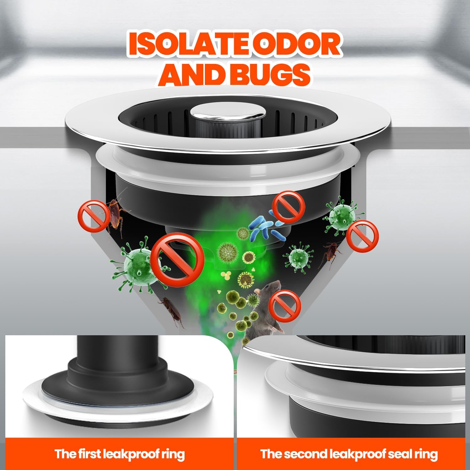 3 in 1 Kitchen Sink Drain Strainer & Sink Stopper Upgraded Stainless Steel Drain Plug with Anti-Clog Basket Drain Stopper Combo, Pop Up Sink Stopper for Standard 3-1/2''
