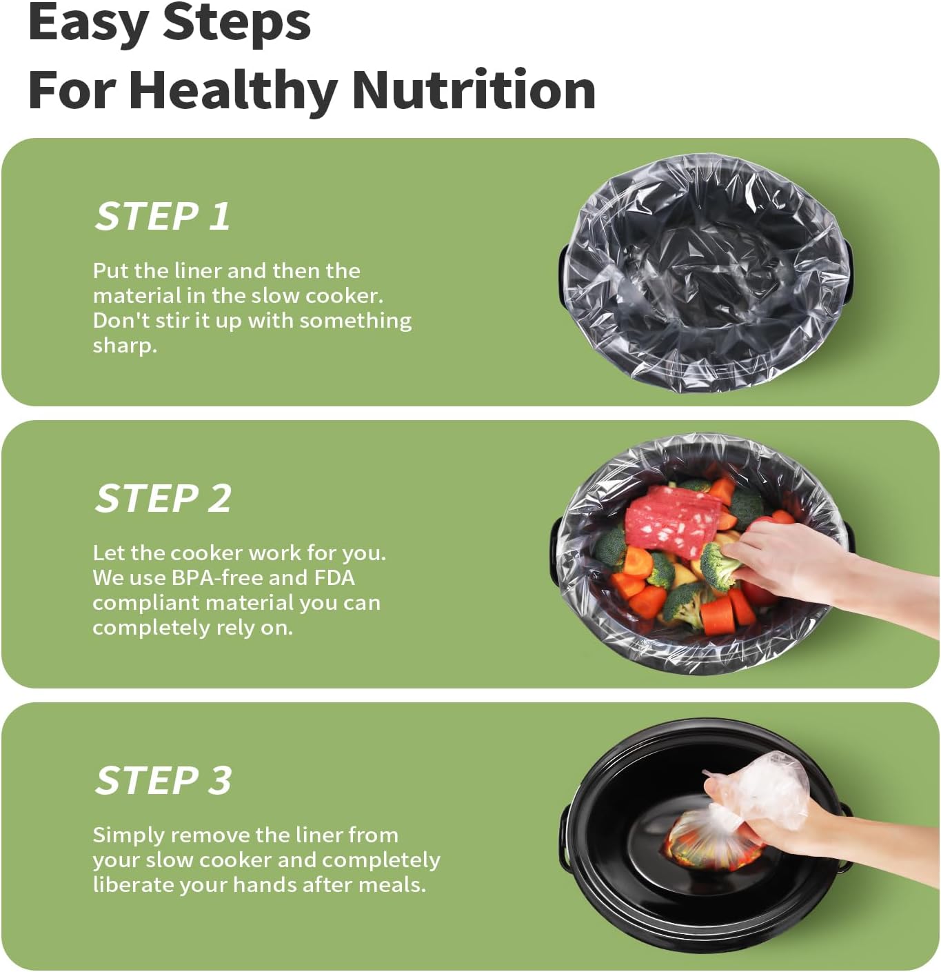 - 【Large Size & Versatile Use】Each cooking bag fits a variety of ingredients and most slow cookers, making it perfect for everything from family meals to everyday cooking. You can even cook two dishes simultaneously in the same pot.