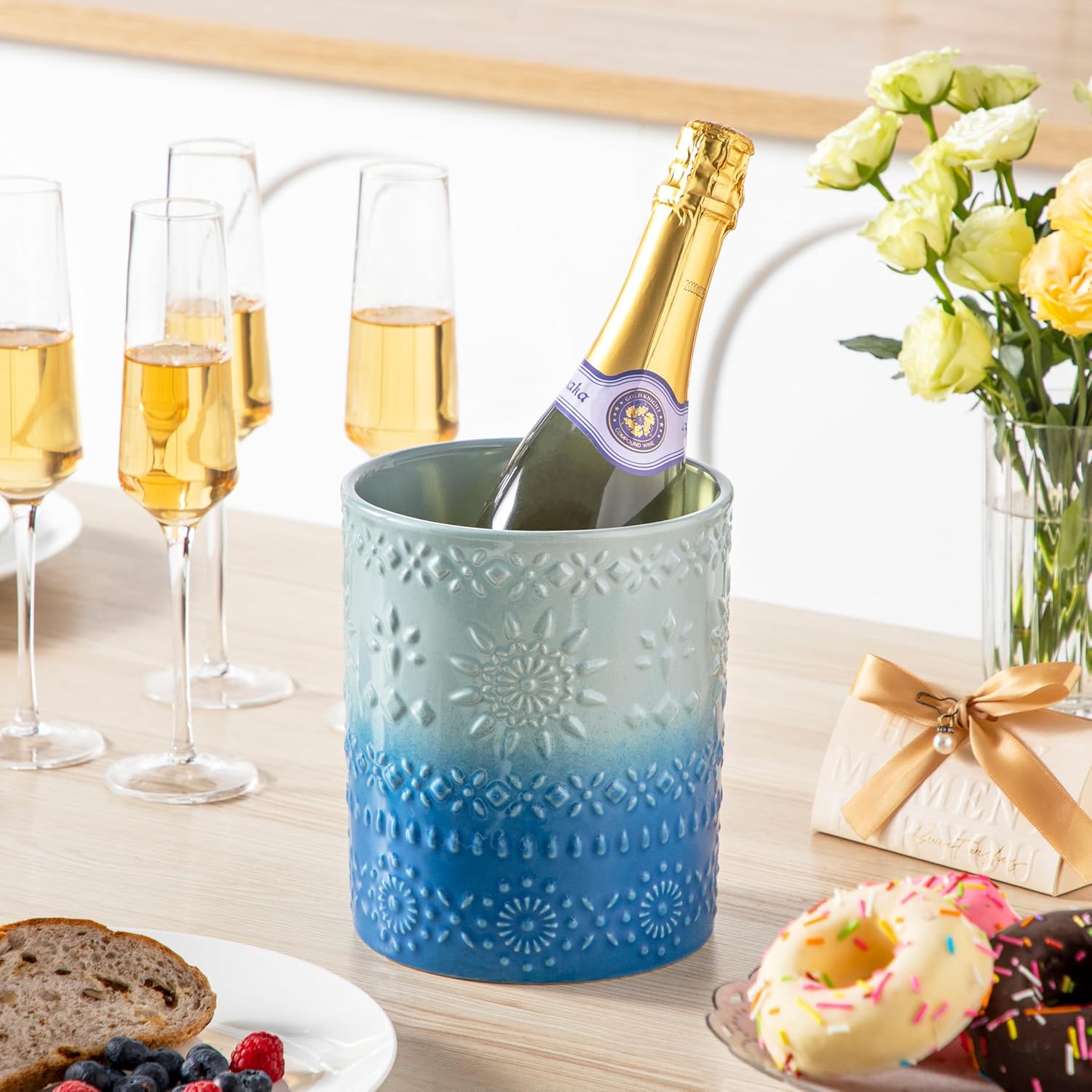 LOVECASA Utensil Holder, 7.2"+5.4" Ceramic Utensil Holder for Countertop, Large Cooking Utensil Crocks for Kitchen Counter, Farmhouse Utensil Vase for Housewarming, Kitchen Decor, Set of 2, Oceans