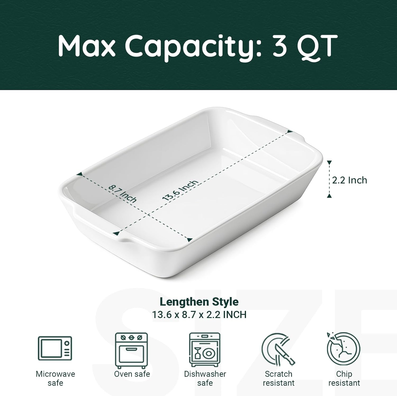 - Deep & Roomy Design: Each size offers generous depth to hold layered lasagna, hearty casseroles, or roasted meats without spillovers.