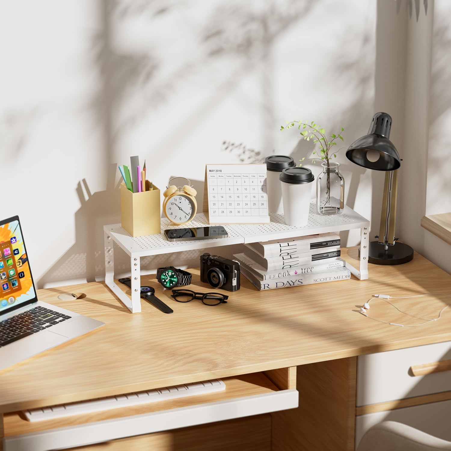 - â ăAdjustable & Expandable Cabinet Shelf Organizeră Customize your kitchen storage with our expandable metal shelving unit! Easily adjust the length from 16.5" to 26.4" to fit cabinets, countertops, or pantry spaces (dimensions: 16.5~26.4"W x 7.8"D x 6.2~7.5"H). Stack multiple units vertically to create a tiered storage solution for maximum space efficiencyâperfect for plates, bowls, mugs, or canned goods.