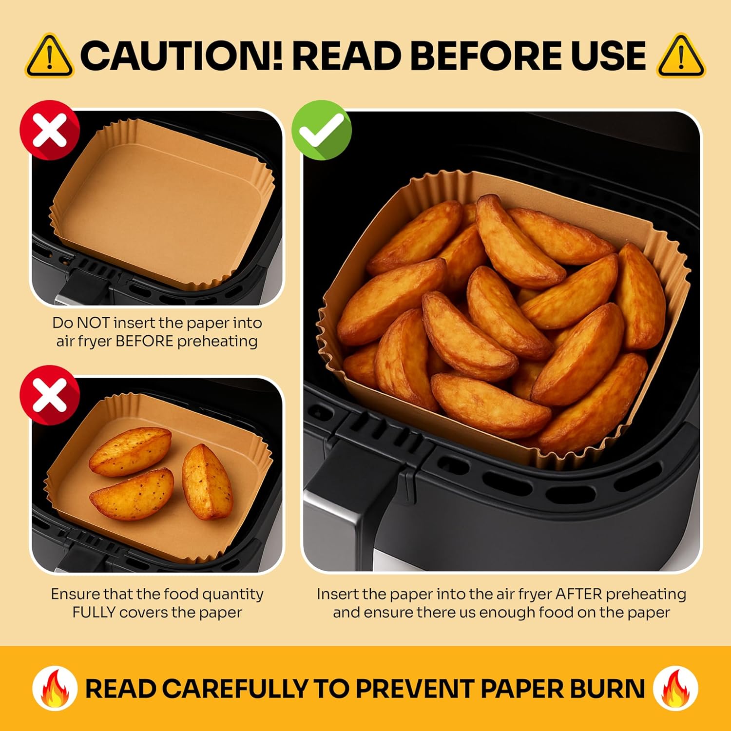 - Reliable Protection: Crafted from premium food-grade parchment paper, our liners provide a reliable barrier between your food and the basket, ensuring even cooking and preventing grease and oils from seeping through.