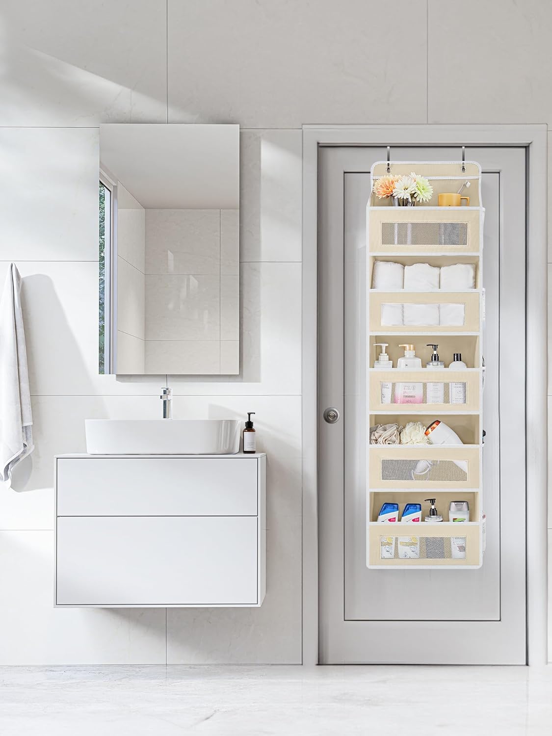 JARLINK Over The Door Organizer Storage, 5 Shelf Hanging Door Organizer with 5 Large Capacity Pockets, Anti Tilt 44 lb Load Behind Door Storage for Bedroom, Bathroom, Pantry, Nursery, (Beige)
