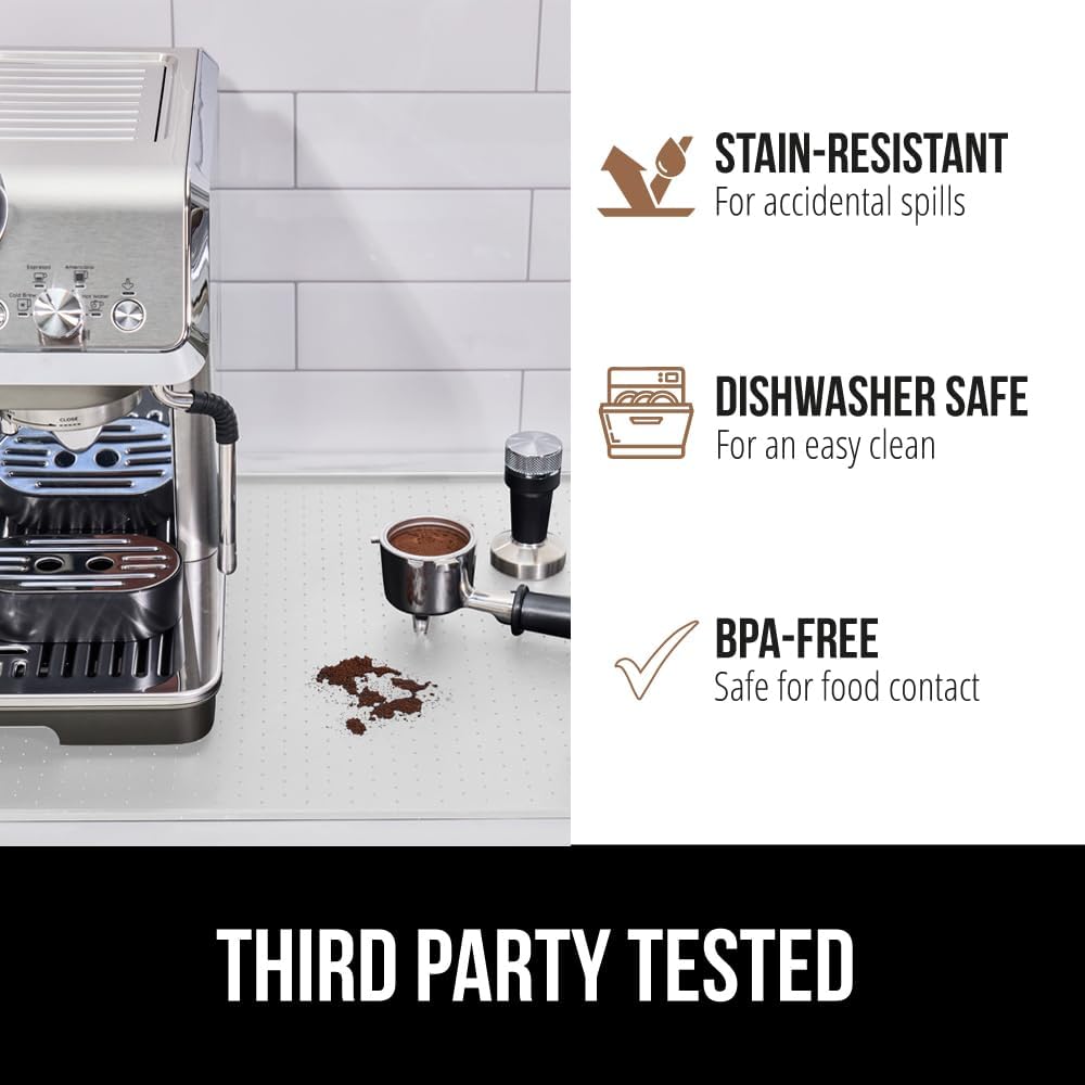 GORILLA GRIP Silicone Coffee Mat, 18x28, Espresso Drink Bar Station Accessories, Waterproof Heat-Resistant Dish Drying Mats, Stay in Place on Kitchen Counter, Home Kitchen Decor Essentials, White