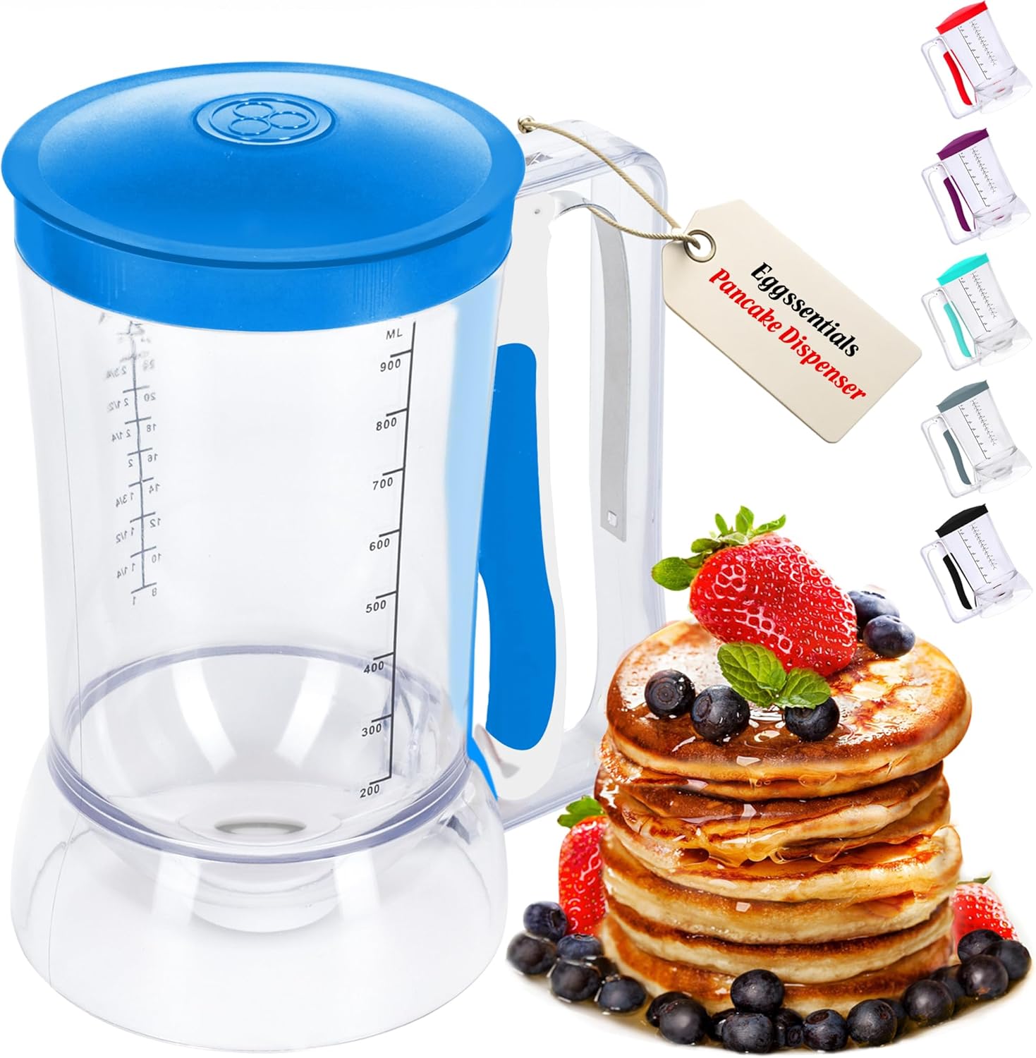 Eggssentials Batter Dispenser – Easy Pour Pancake Batter Dispenser for Cupcakes, Muffins, Waffles & Griddle – Kitchen Baking Tool BPA-Free - Blue Color