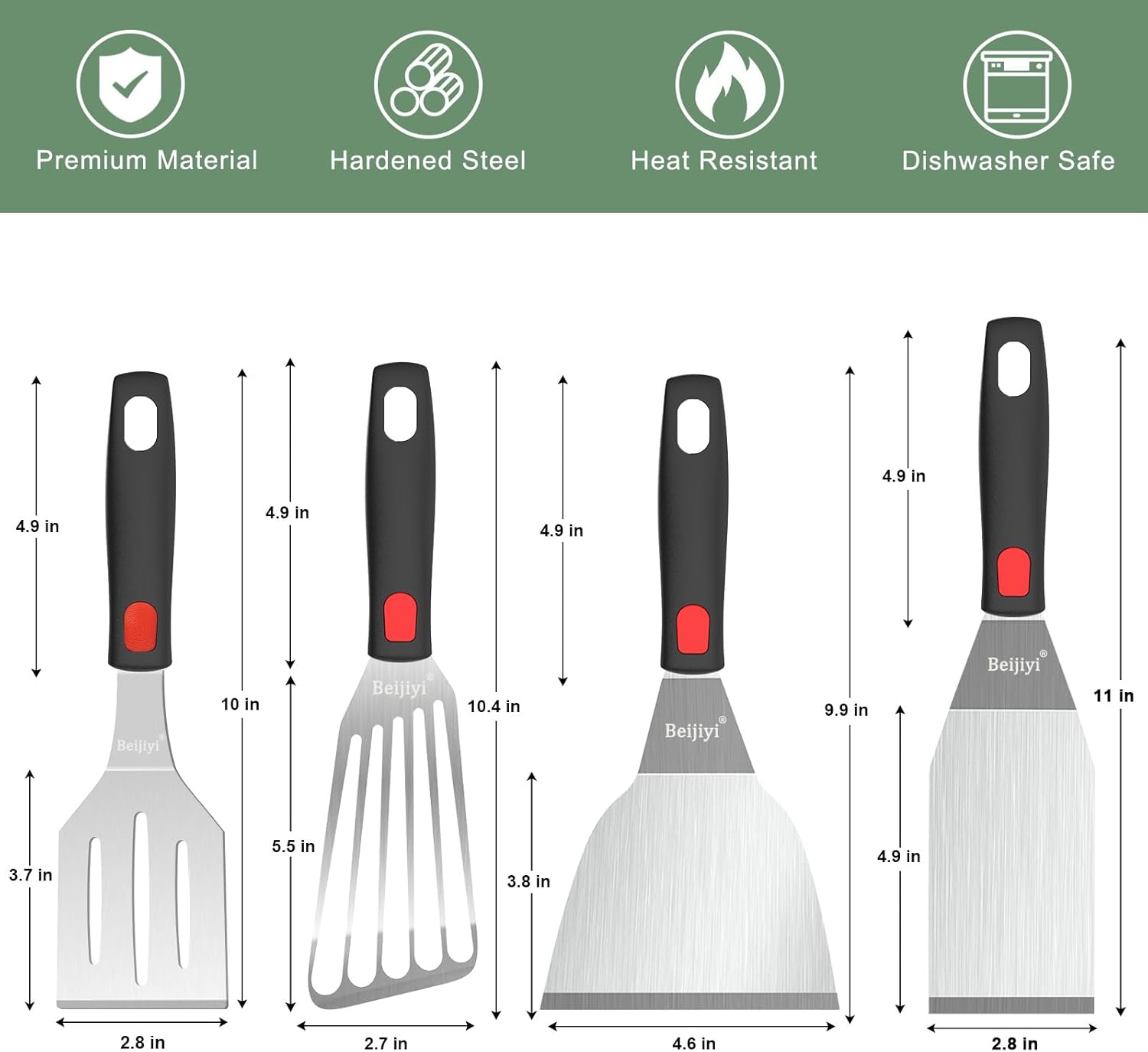 - Comfortable & Heat Resistant Handle: The stainless steel spatula set has a silicone handle, which is heat-resistant up to 600°F, effectively insulates to keep your hands cool. The contoured handle provides a comfortable, non-slip grip