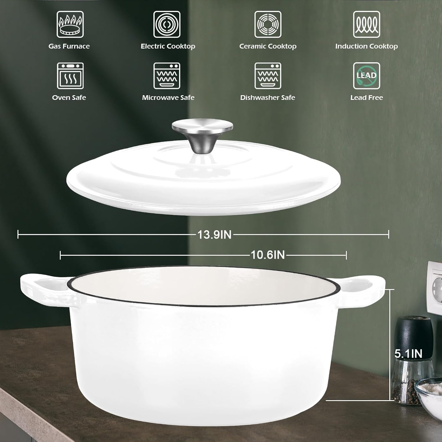 - Versatile Kitchen Essential, the 6 quart Dutch oven capacity serves 4-6 people, from simmering soups to baking bread and making one-pot meals, meets all the needs of daily stewing. It transitions effortlessly from stovetop to oven, making meal prep a breeze, suitable for gas, electric, ceramic, induction stovetops