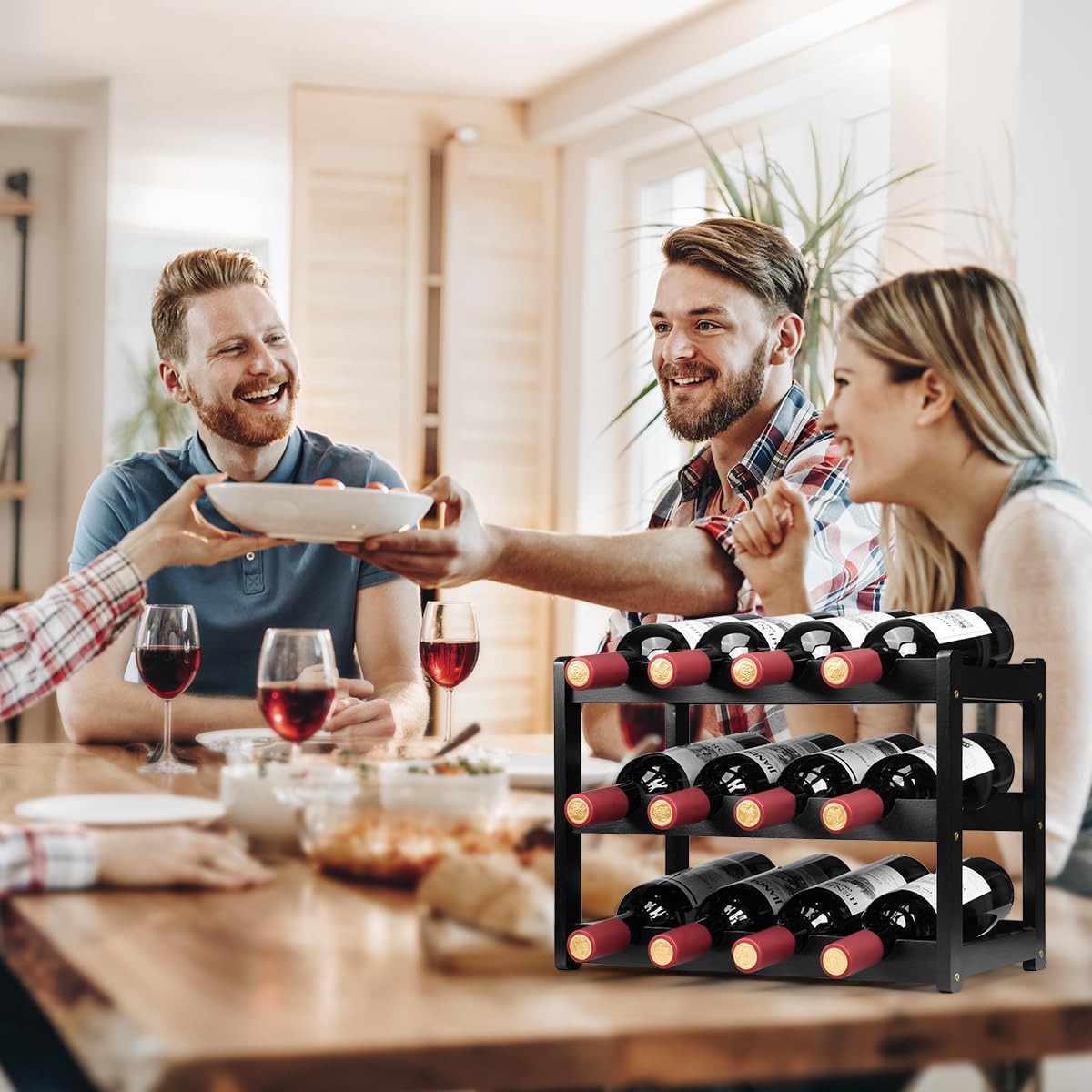 - 🍷【Space Saving】Each wine rack can store 12 bottles of wine, 3-Tier compact design allows it to save a lot of space and hold enough wine.
