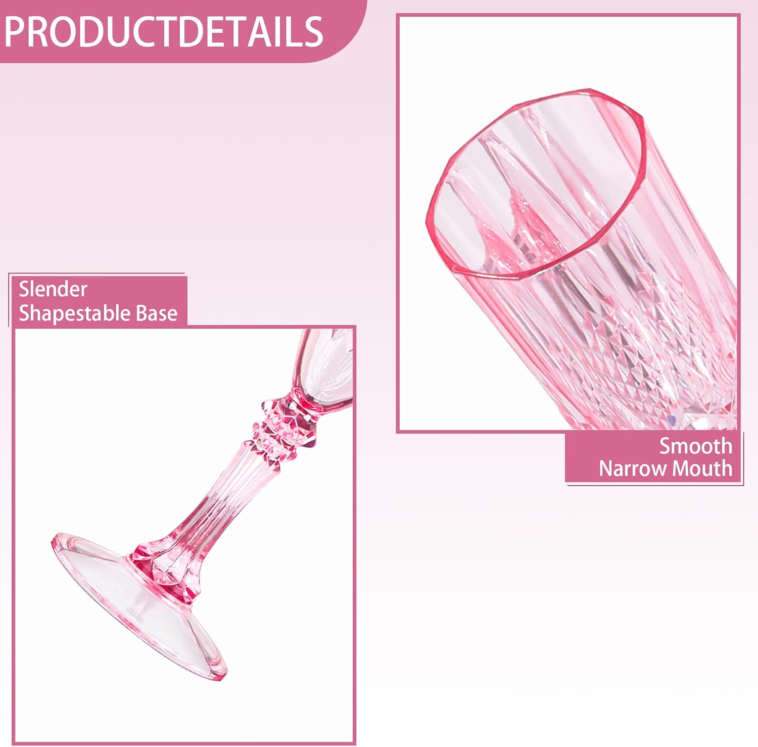 - Charming Set: Champagne flutes set include 12 retro-style pink champagne plastic wine glasses, providing ample quantity to meet your daily use and replacement needs. A suitable champagne cup is the icing on the cake. Plastic wine glasses not only carry the wine, but also carries the laughter and blessings