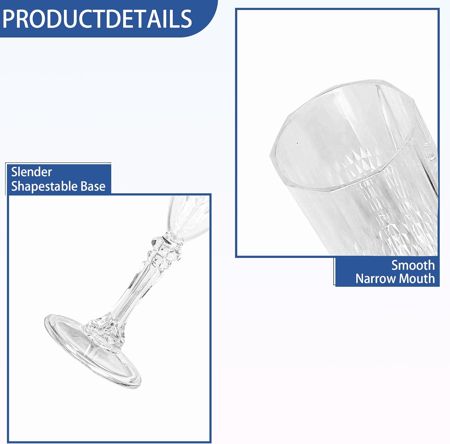 - Charming Set: Champagne flutes set include 12 retro-style transparent champagne plastic wine glasses, providing ample quantity to meet your daily use and replacement needs. A suitable champagne cup is the icing on the cake. Plastic wine glasses not only carry the wine, but also carries the laughter and blessings