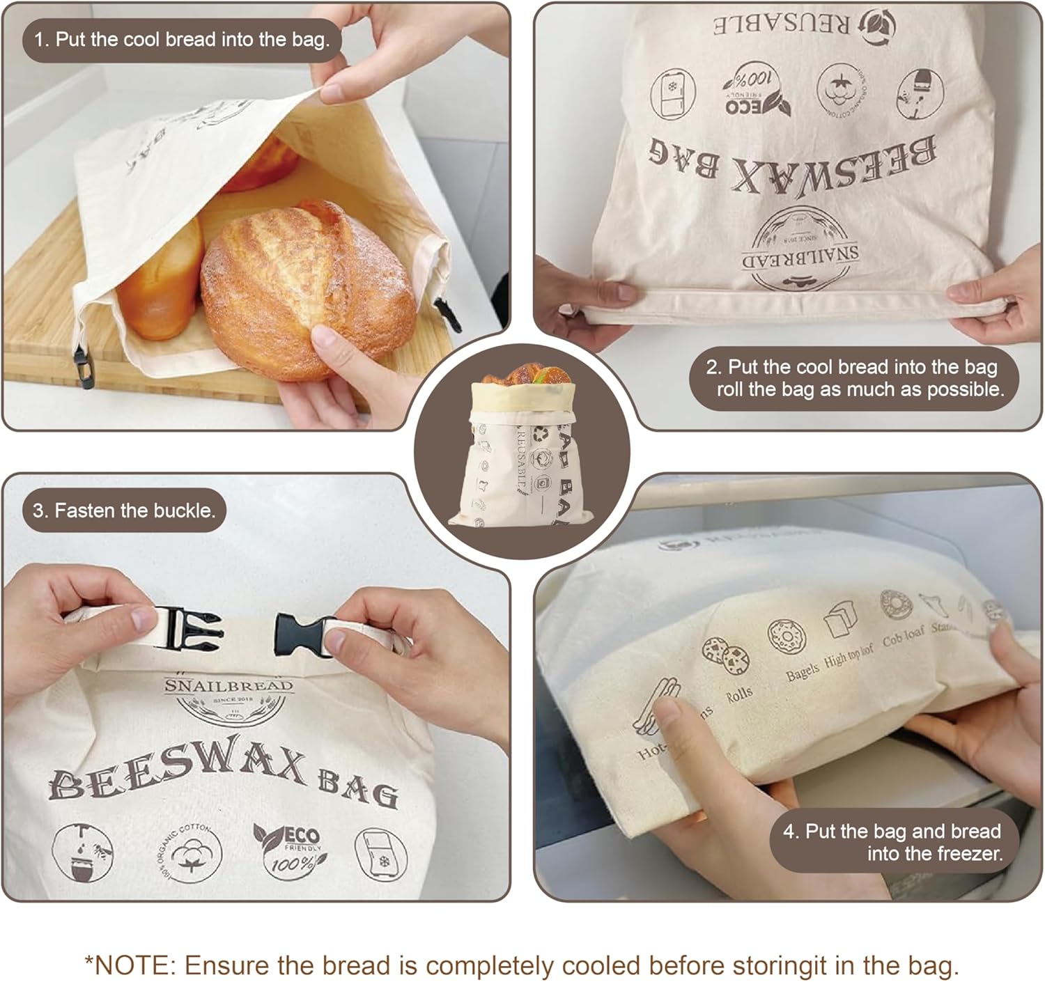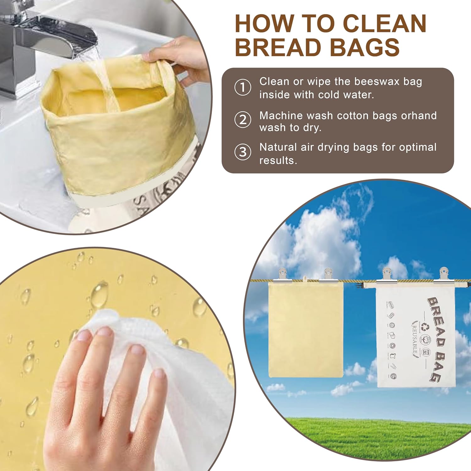 - 【Easy to use】bees wax wraps reusable roll up the bag mouth and lock it with a button to keep the bread fresh. The sourdough bread bag is an ideal bag for storing freshly baked bread/sourdough as well as fruits and vegetables.
