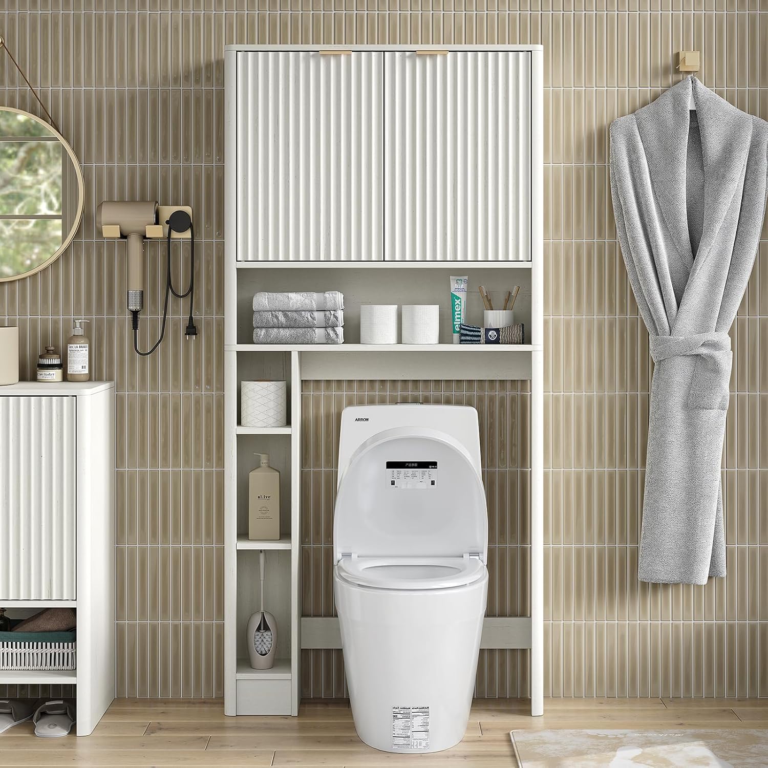 Furnideco Fluted Over The Toilet Storage Cabinet 31''W Modern Above Toilet Storage Cabinet with Fluted Doors & Adjustable Shelf for Bathroom, Antique White