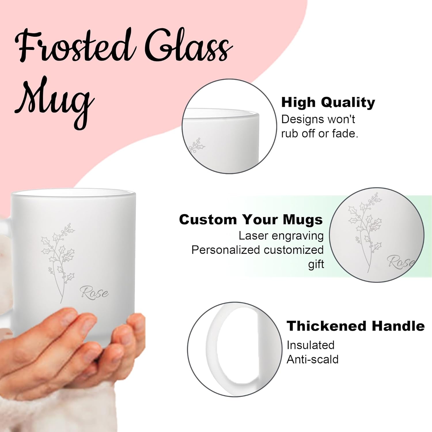 Personalized Coffee Mug, Engraved Birth Flower Mug for Women With Custom Name & Text, Customized Gifts for Birthday, Christmas, Grandma, Wife, Mom, Friends