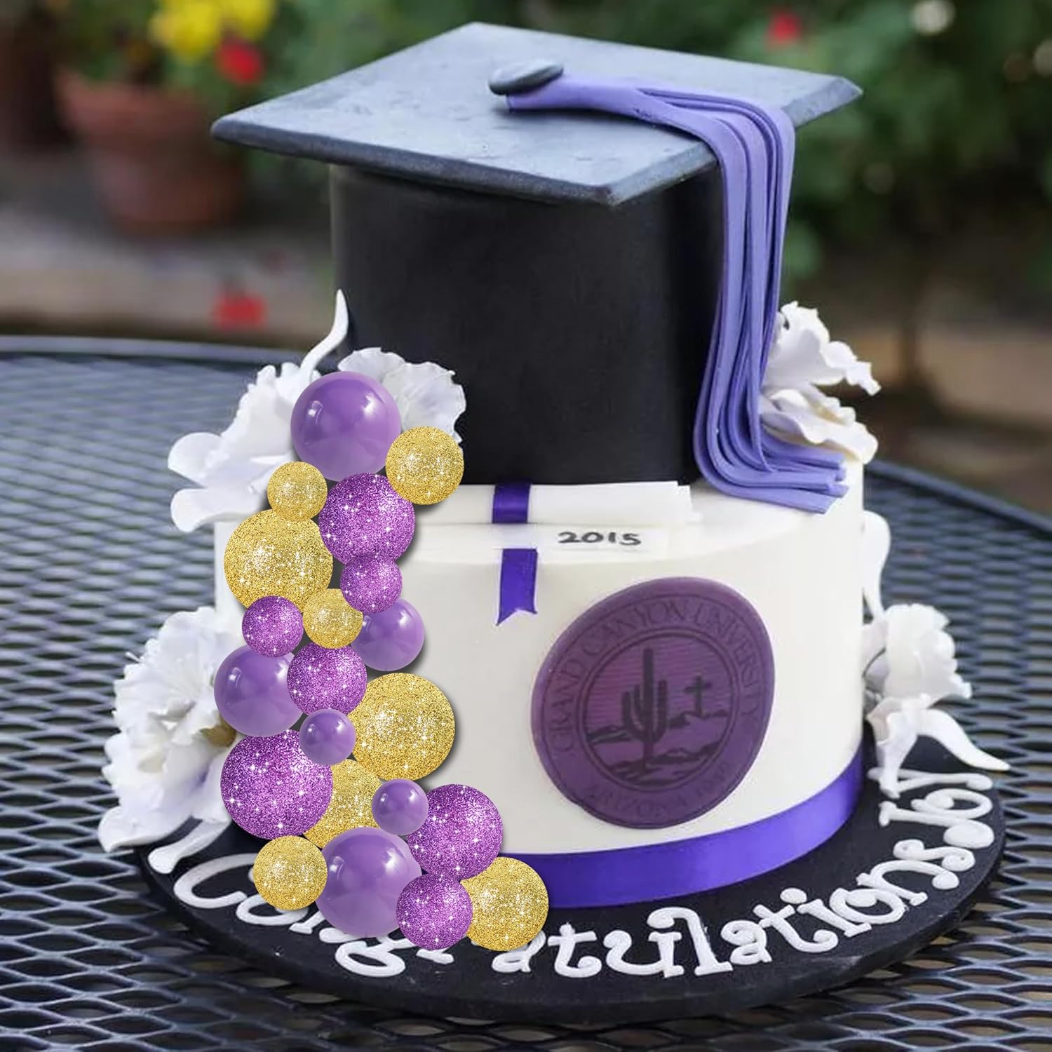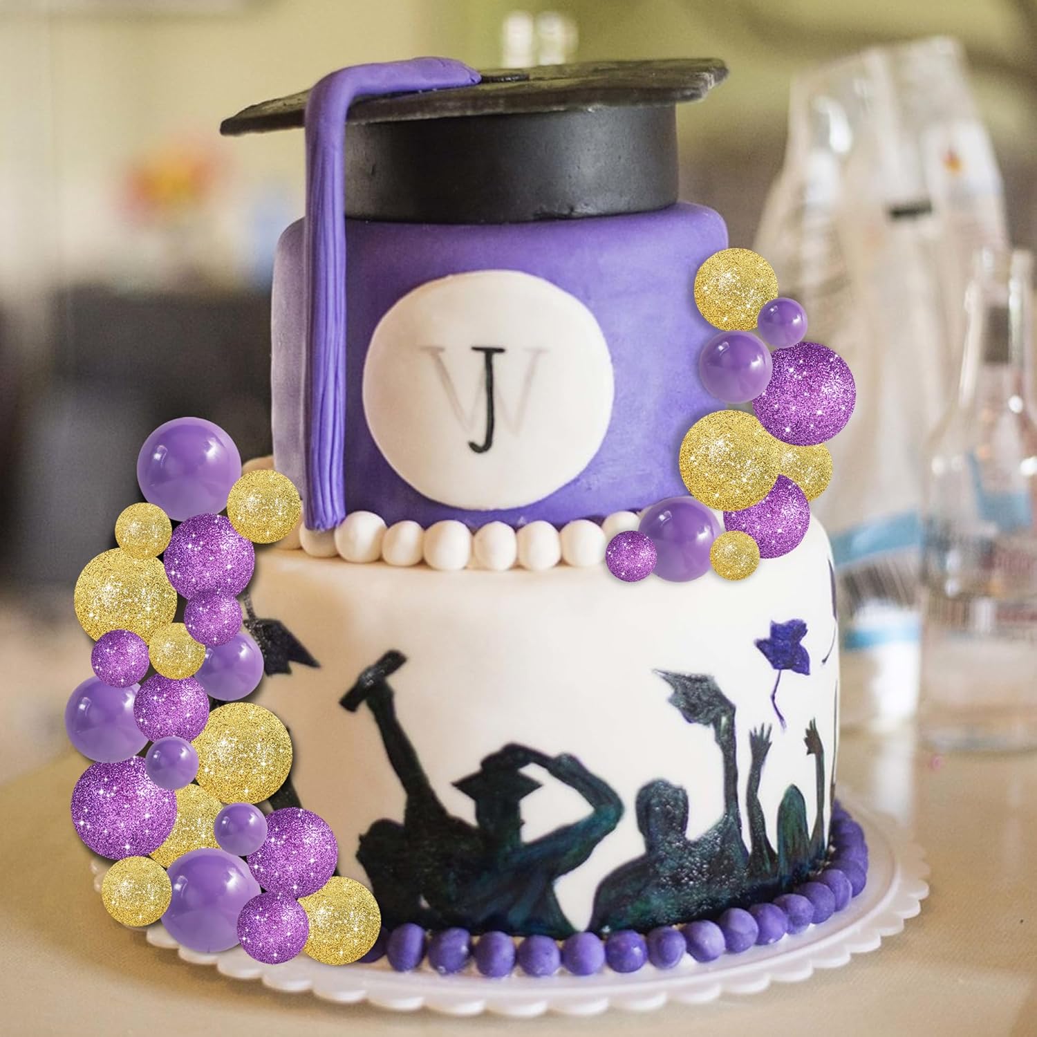 BEISHIDA 40 Pcs Ball Cake Toppers Mini Balls Cake Decorations Purple Gold Foam Balls DIY Cake Topper for Baking Congrats Grade 2025 Graduation Birthday Mardi Gras Lakers Decorations (Purple Gold)