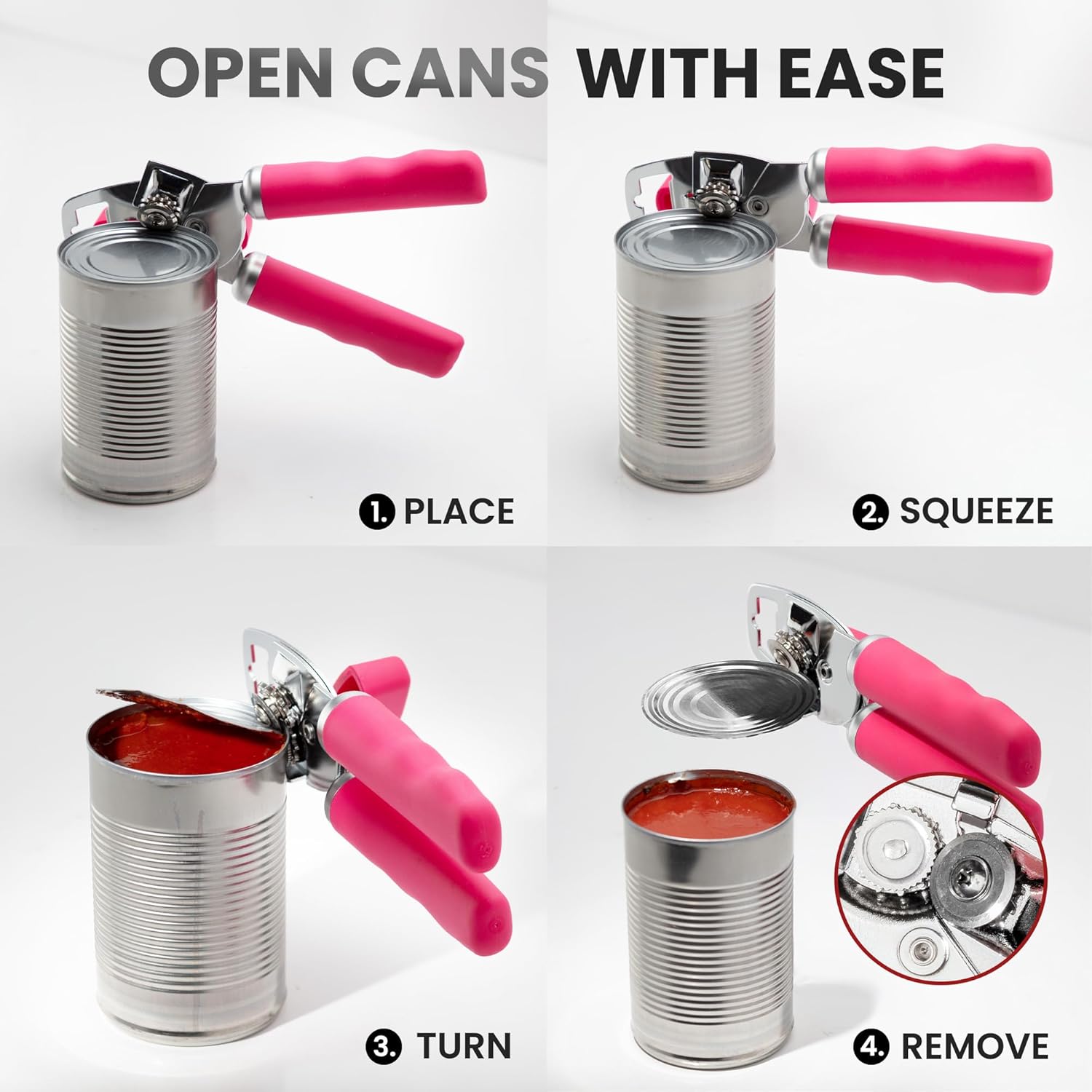 Zulay Kitchen Heavy Duty Stainless Steel Can Opener Manual with Bottle Opener - Rust Proof Manual Can Opener With Turn Knob & Comfy Soft Grip Handles - Dragonfruit