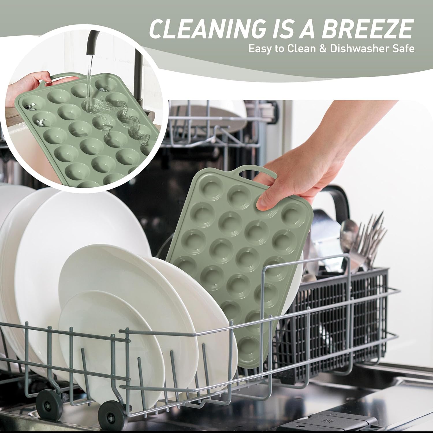 - 【Effortless Release Every Time】Experience 1-second demolding! Simply press the flexible food-grade silicone base to pop out cupcakes intact - no scraping or greasing required. Ideal for sticky recipes like caramel pecan muffins or gooey chocolate lava cakes. Our baking cupcake muffin pan can be safely placed in the dishwasher, and the silicone baking cupcake muffin pan material reduces oil residue by 85% compared to metal baking pans, making it easy to rinse even with simple running water.