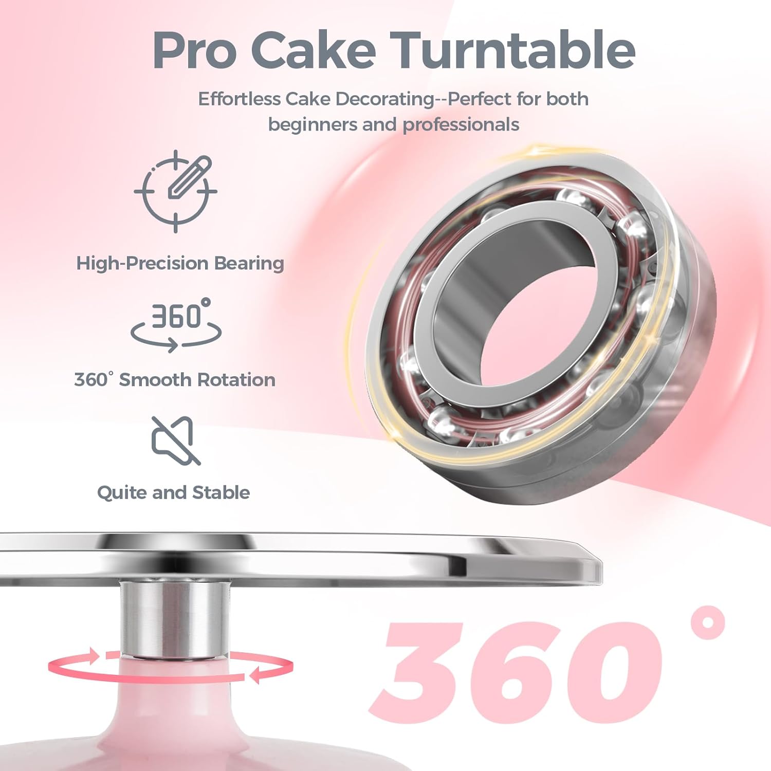 - 360° SMOOTH TWO-WAY ROTATING STAND: Whether you're a left-hander or right-hander, this cake decorating supplies works for everyone, as it can be turned both clockwise and counterclockwise. Thanks to the stainless steel bearing, it'll eliminate horrible friction sound and provide silky-smooth revolving each and every time.