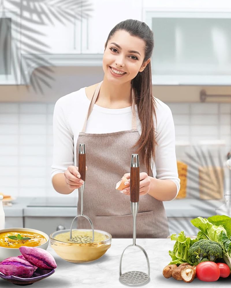- EASY MASHING: Dual-Arc Design Naturally Distributes Hand Pressure for Effortless Mashing, even when crushing dense ingredients.