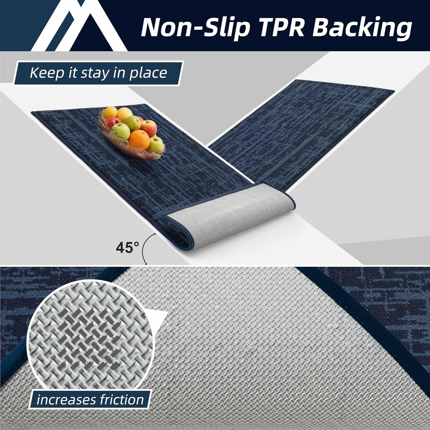 COSY HOMEER Kitchen Rugs Non Slip Washable 24"x36"+24"x60" Absorbent Soft Kitchen Mats for Floor Polyester Kitchen Runner Rug Sets of 2 Kitchen Floor Mats for Sink Mat,Hallway,Laundry,Navy Blue