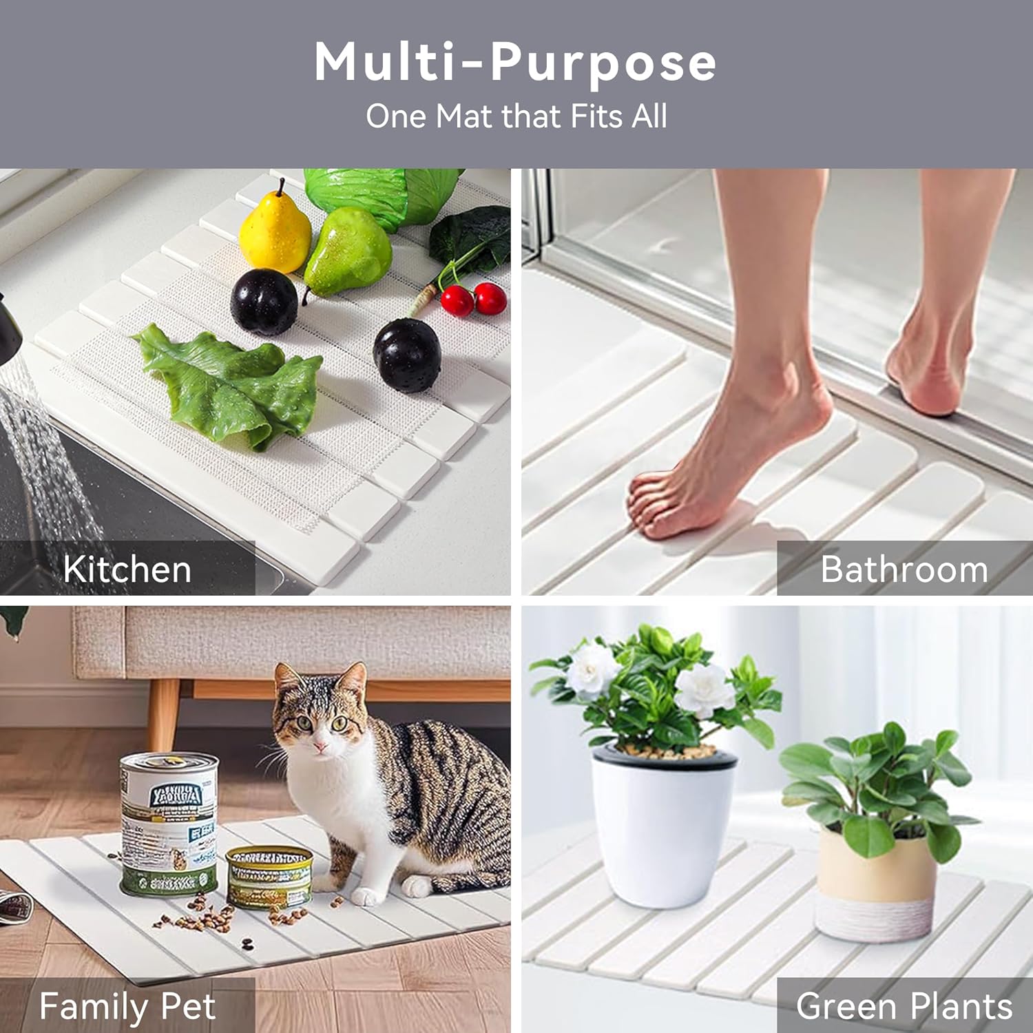 - Multi-Purpose: This super Absorbent Dish Drying Mat Can be used in the kitchen to dry dishes, food, also can be used as heat-resistant mats, pet feeding mats, flower pot trays, bath mats, fashionable appearance and practicality suitable for any space in the home.