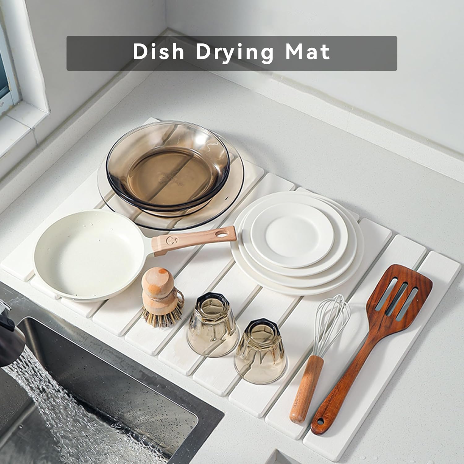 Large Stone Dish Drying Mat for Kitchen Counter, 24" x 16"Fast Dry Stone Mat, Super Absorbent Dish Drying Mat, Drying Board Diatomaceous for Kitchen, Utensils, Fruits, Instant Drying Stone Mat, White