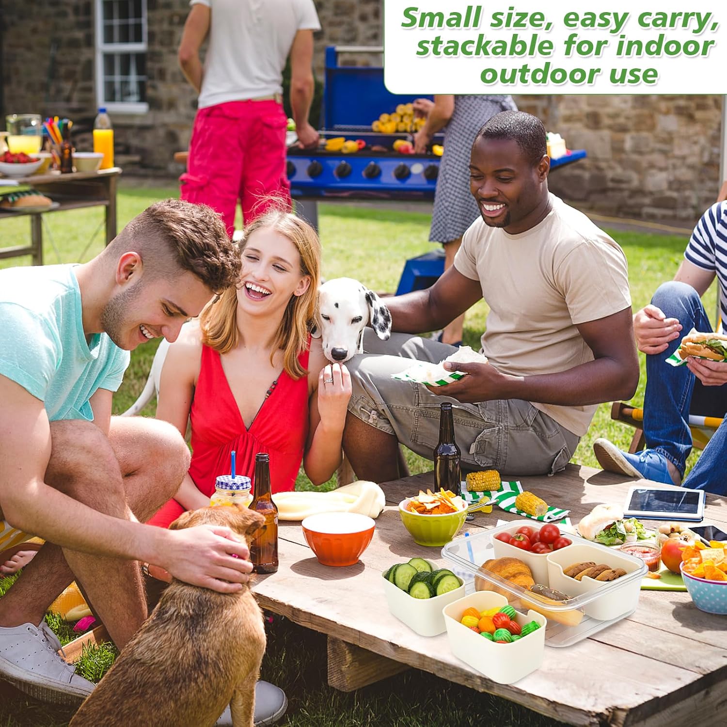 - ăPortable Charcuterie ContainerăThe divided serving tray with lid is stackable for easy carry, perfect for indoor and outdoor use like gatherings, parties, kitchen use, movie night, watching ball game and beach camping, picnic and travel for portable size.