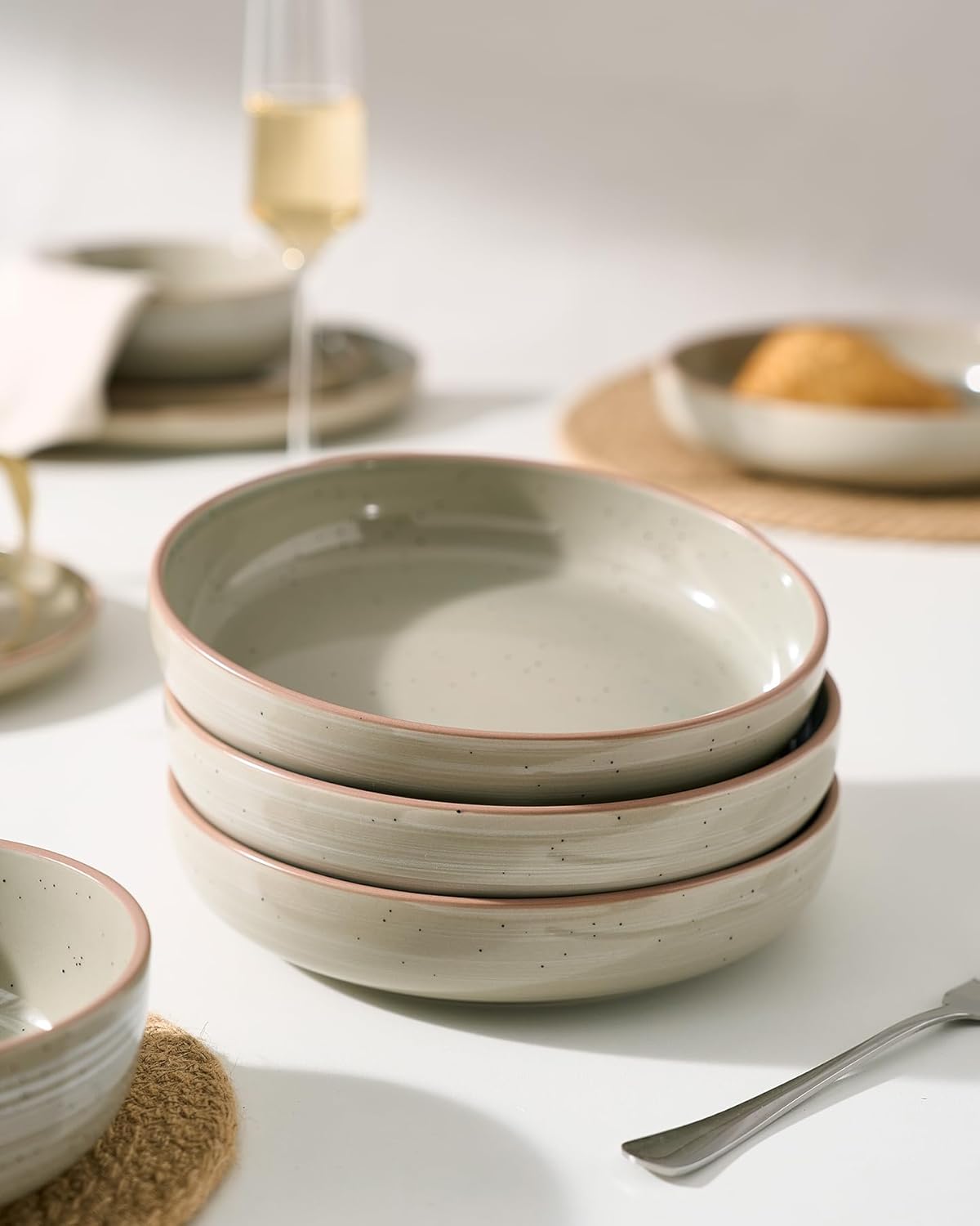 - HANDCRAFTED - Featuring a simple, stylish design, these pasta plates are handcrafted and glazed with a double-reactive glaze for a unique, dreamy color. Shades may vary on the glaze, showcasing the one-of-a-kind beauty of our handcraft
