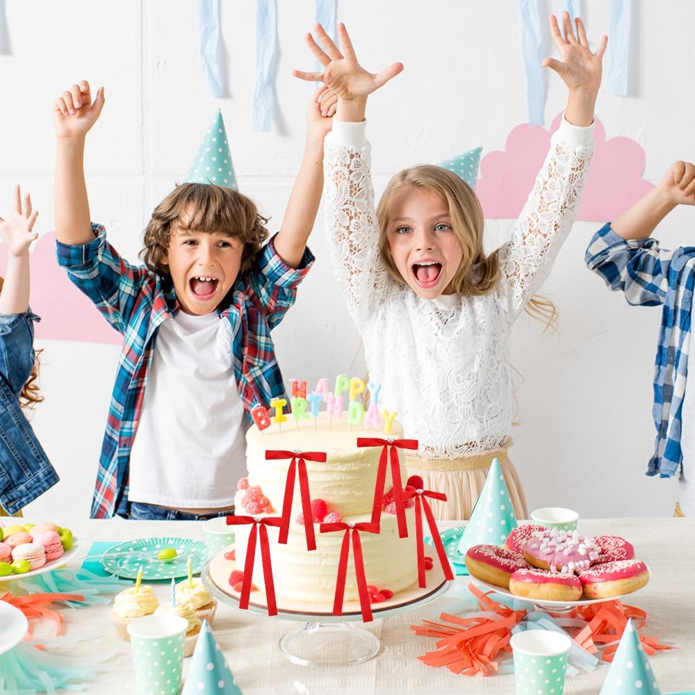 - WIDELY APPLIED: Personalized bows for cake are perfect for Bow-themed party decorations, such as decorating birthday cakes, cupcakes, desserts, tables, bottles, Christmas, and more